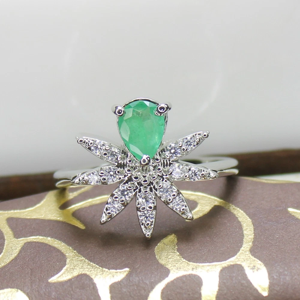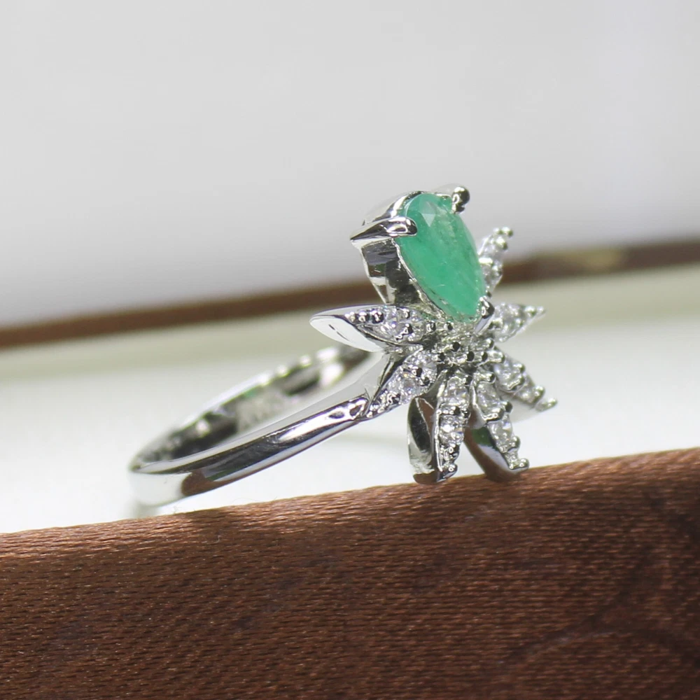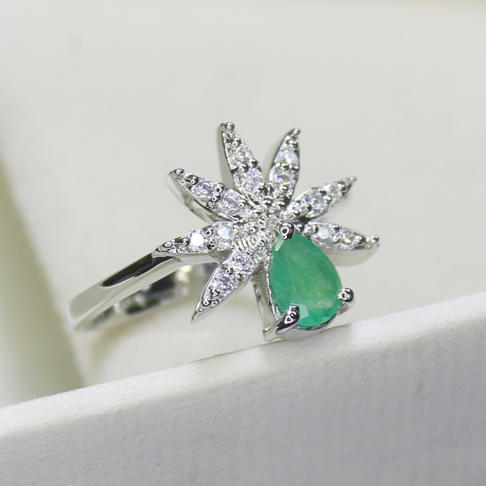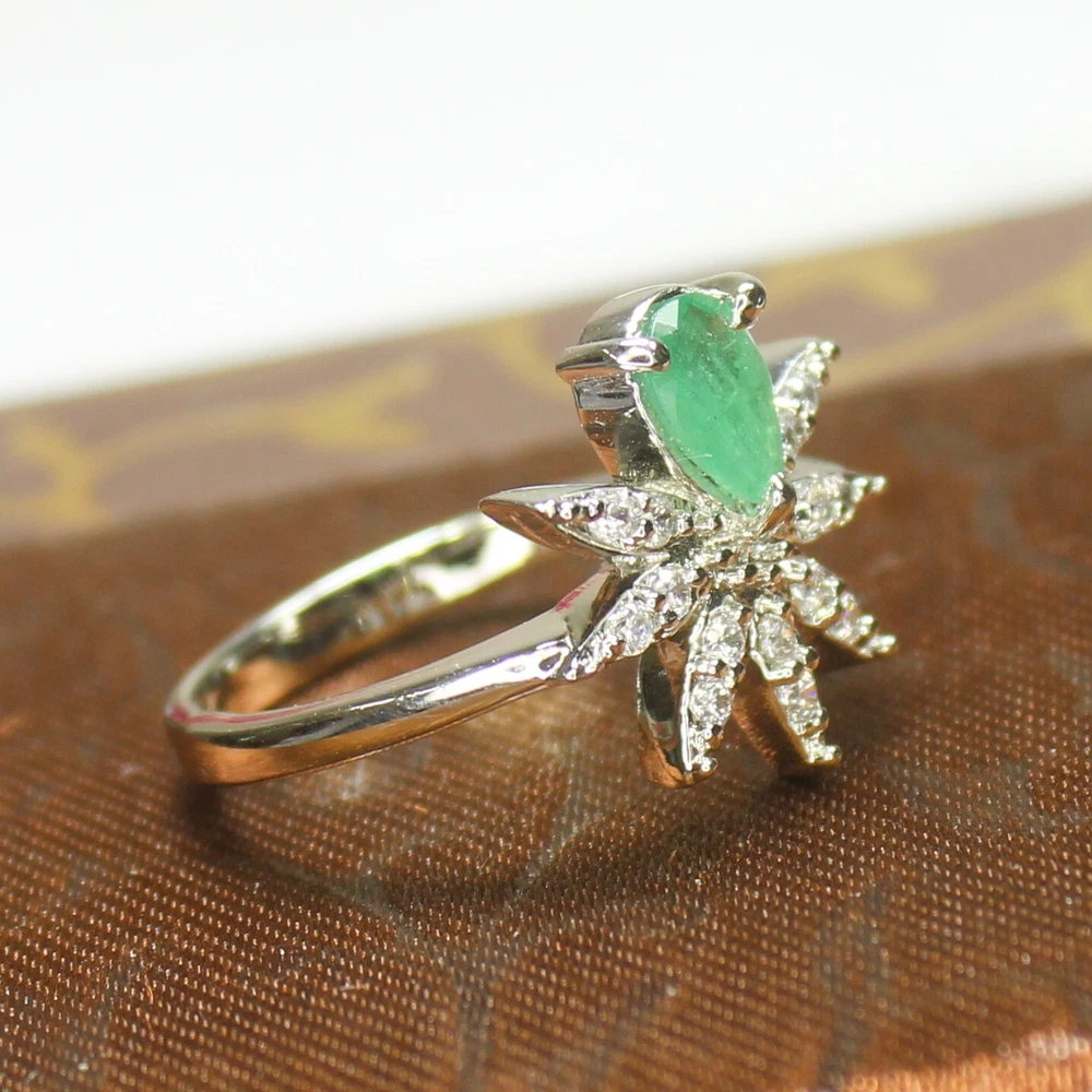 ARBIYA GEMS JEWELRY TYPE: RING STONE: NATURAL GREEN EMERALD SIDE STONES: CUBIC ZIRCONIA RING SIZES: ALL SIZES AVAILABLE RING WEIGHT: 3.23 GRAMS RING METAL: STERLING SILVER METAL PURITY: 925 TREATMENT: NONE COUNTRY OF ORIGIN: INDIA HANDLING TIME: 1-2 DAYS DELIVERY TIME: WE USUALLY TAKES 15-25 DAYS BUT MOSTLY IT DELIVERS TO CUSTOMERS WITHIN 15 DAYS RETURN POLICY: RETURN ACCEPTED ON MANUFACTURING DEFECT WITHIN 30 DAYS. RETURN GIVEN AS MONEY BACK OR REPLACMENT FEEDBACK POLICY: PLEASE LEAVE US A POSITIVE FEEDBACK IF YOUR ITEMS DELIEVERED IN GOOD CONDITION