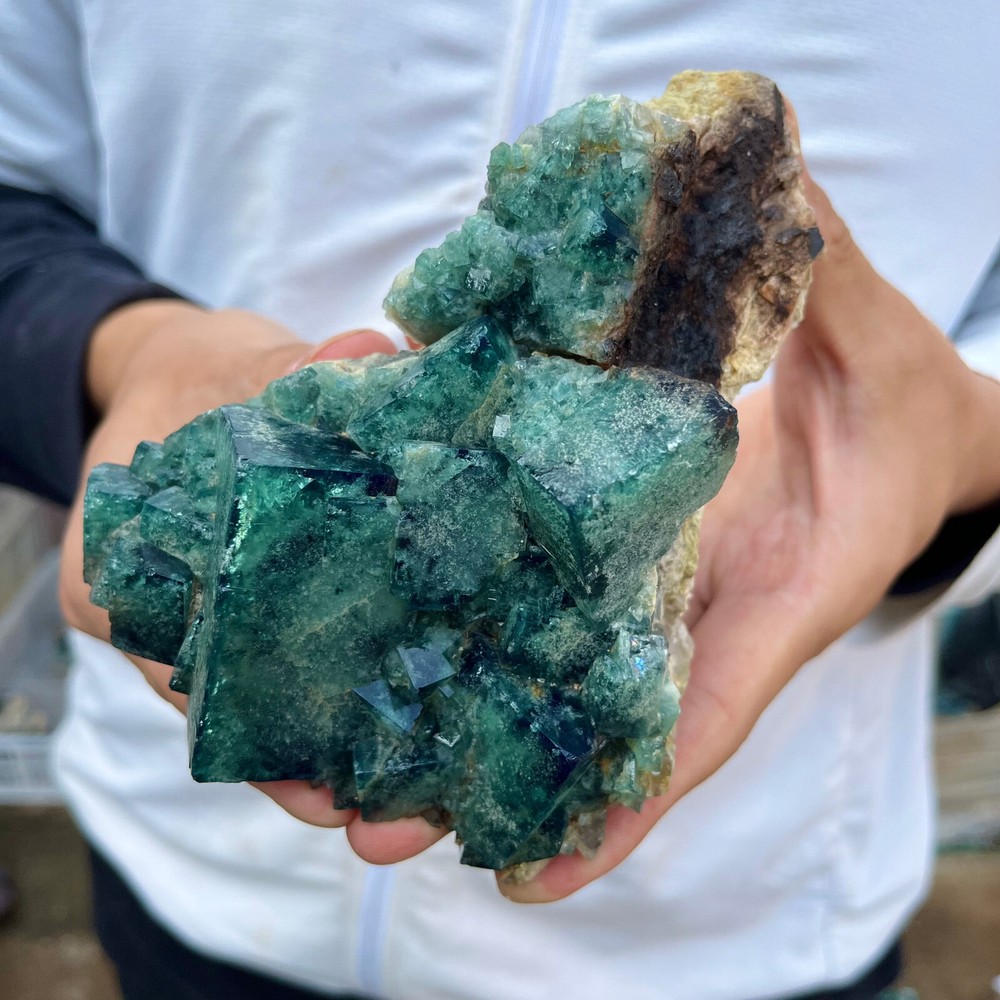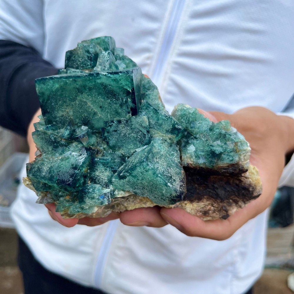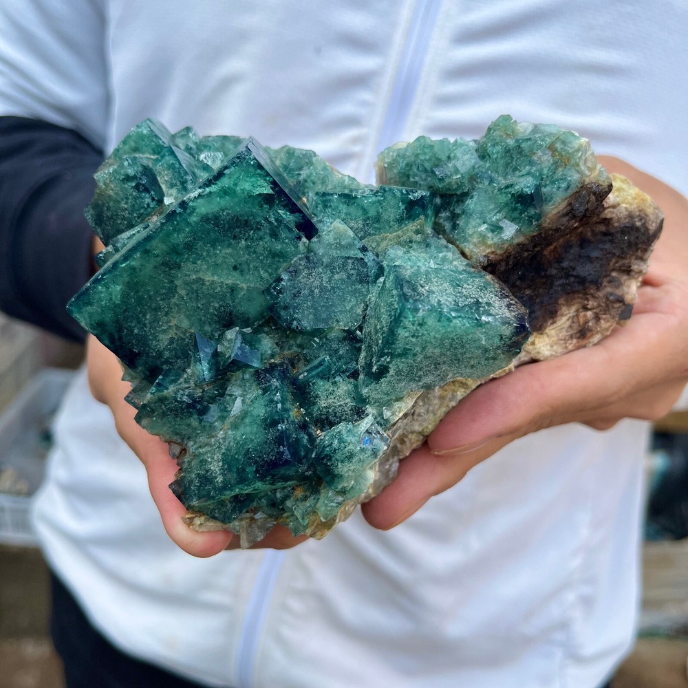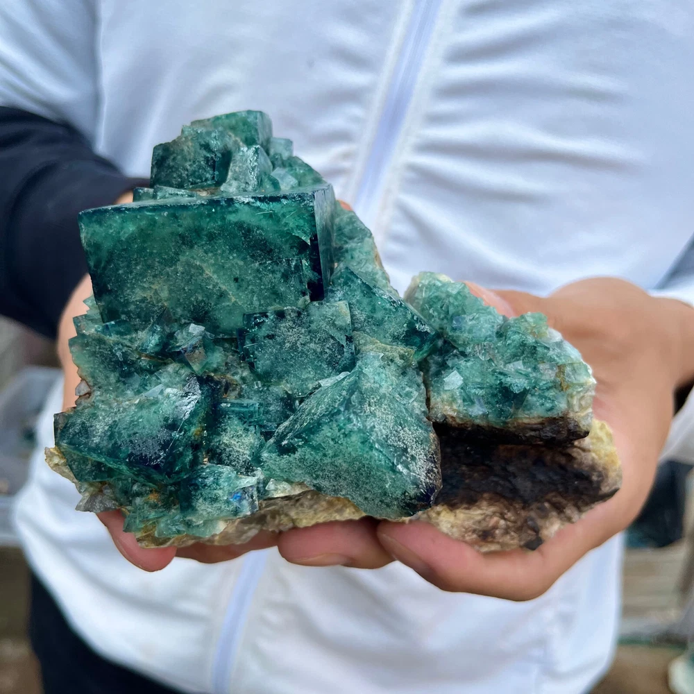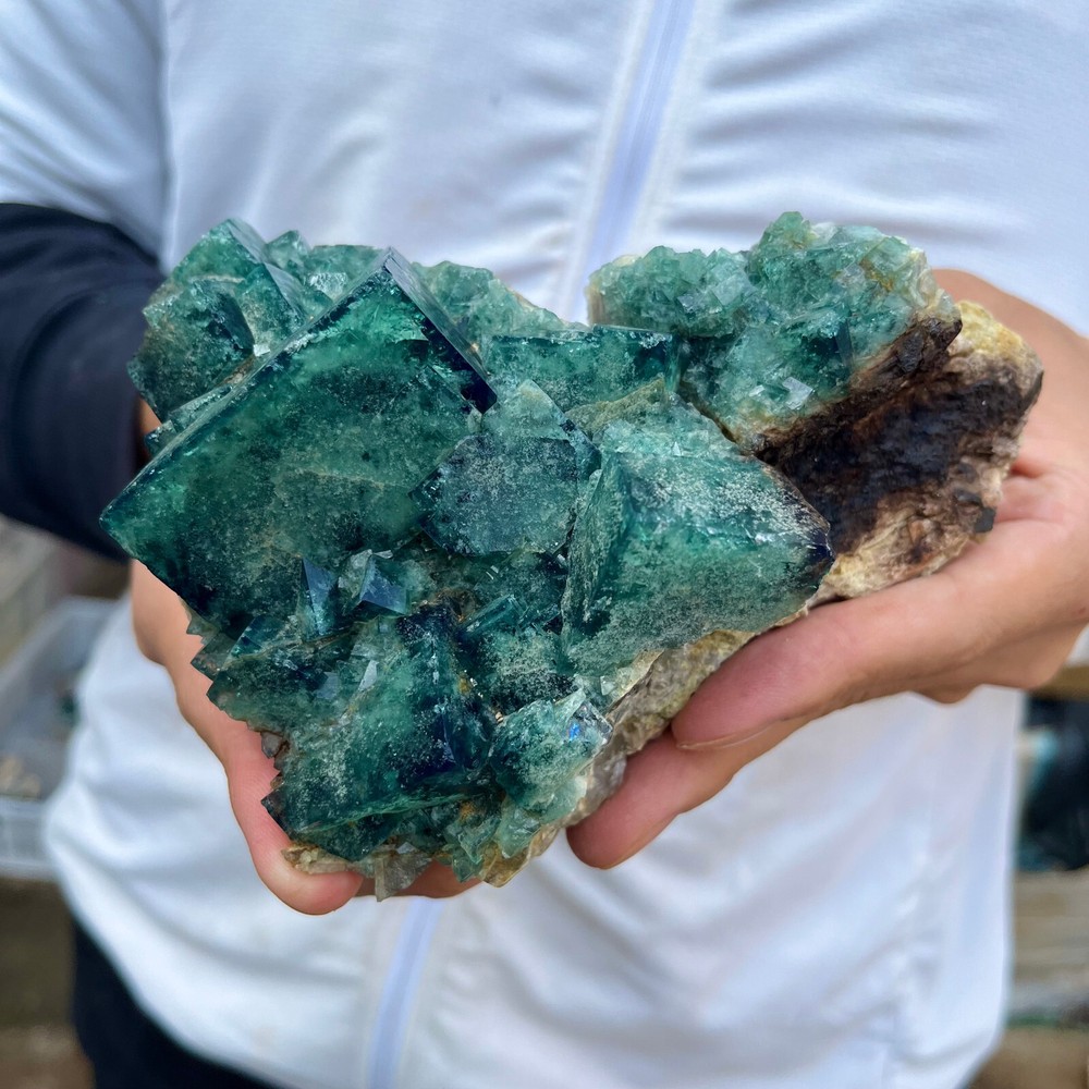 Amazing blue green hues in the fluorite. Item got here super quickly and it was wrapped completely in bubble wrap and tape. It looks exactly like the picture. It’s a solid chonk of a rock with interesting white flecks of crystal on the bottom. A+ transaction!!!