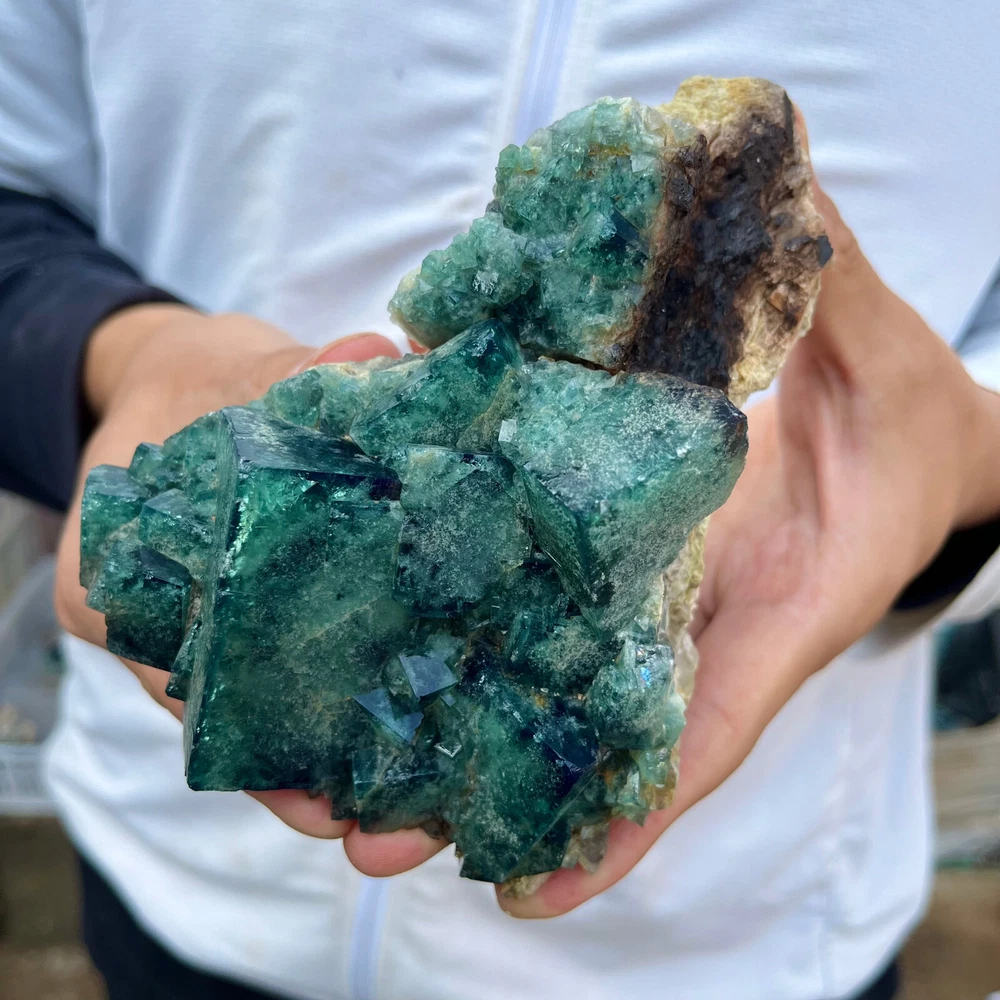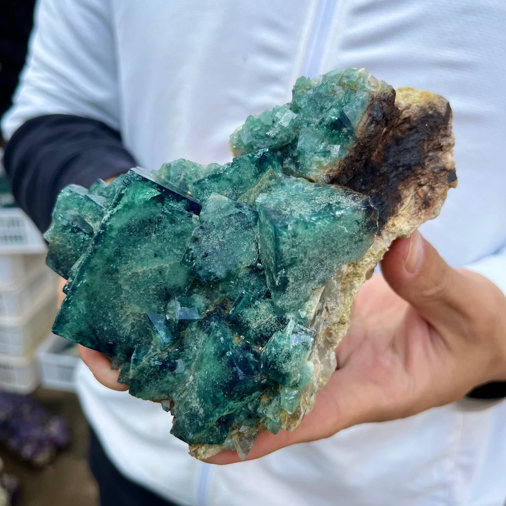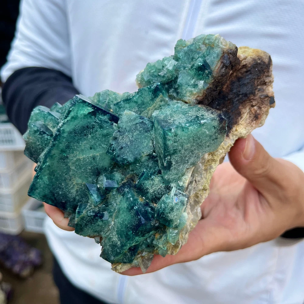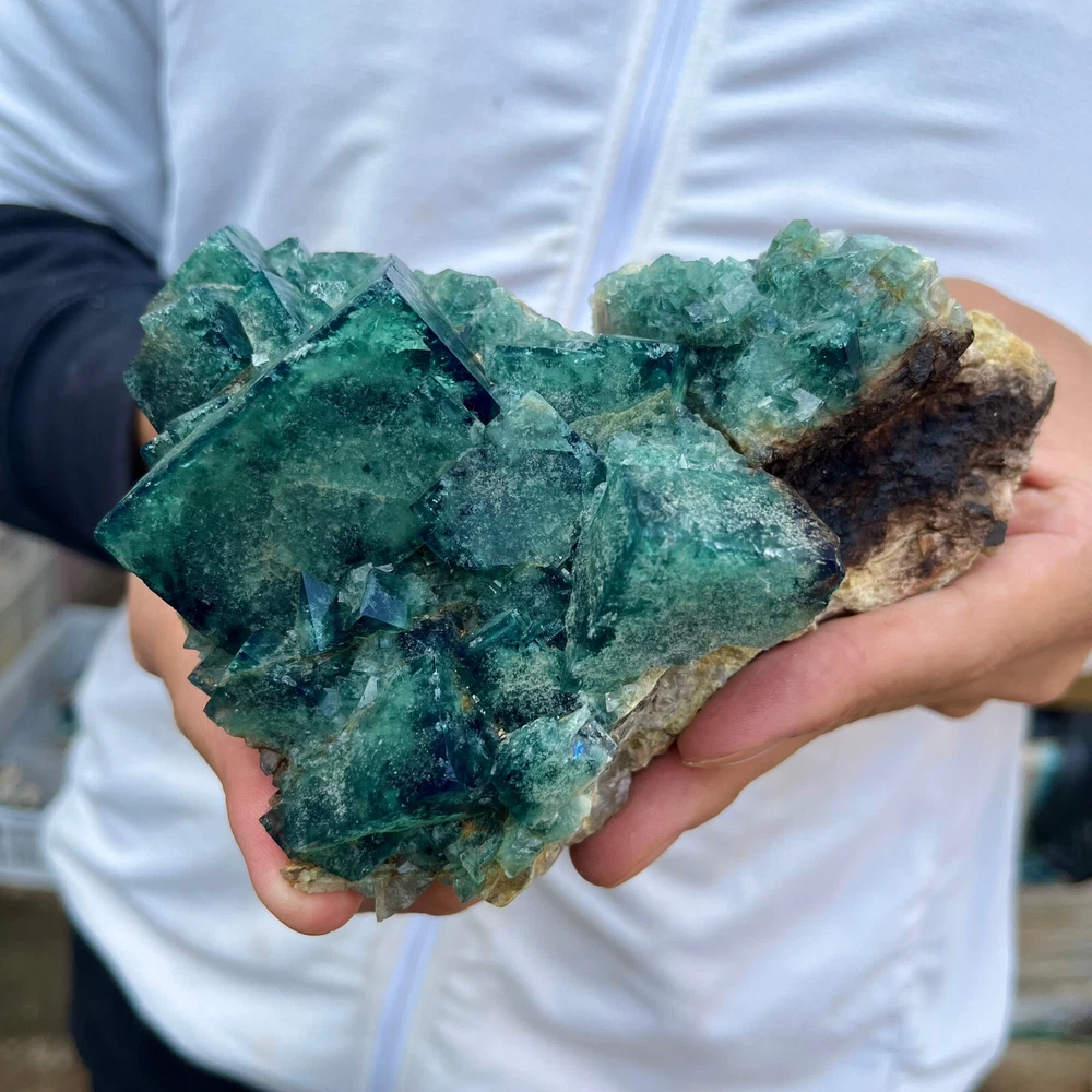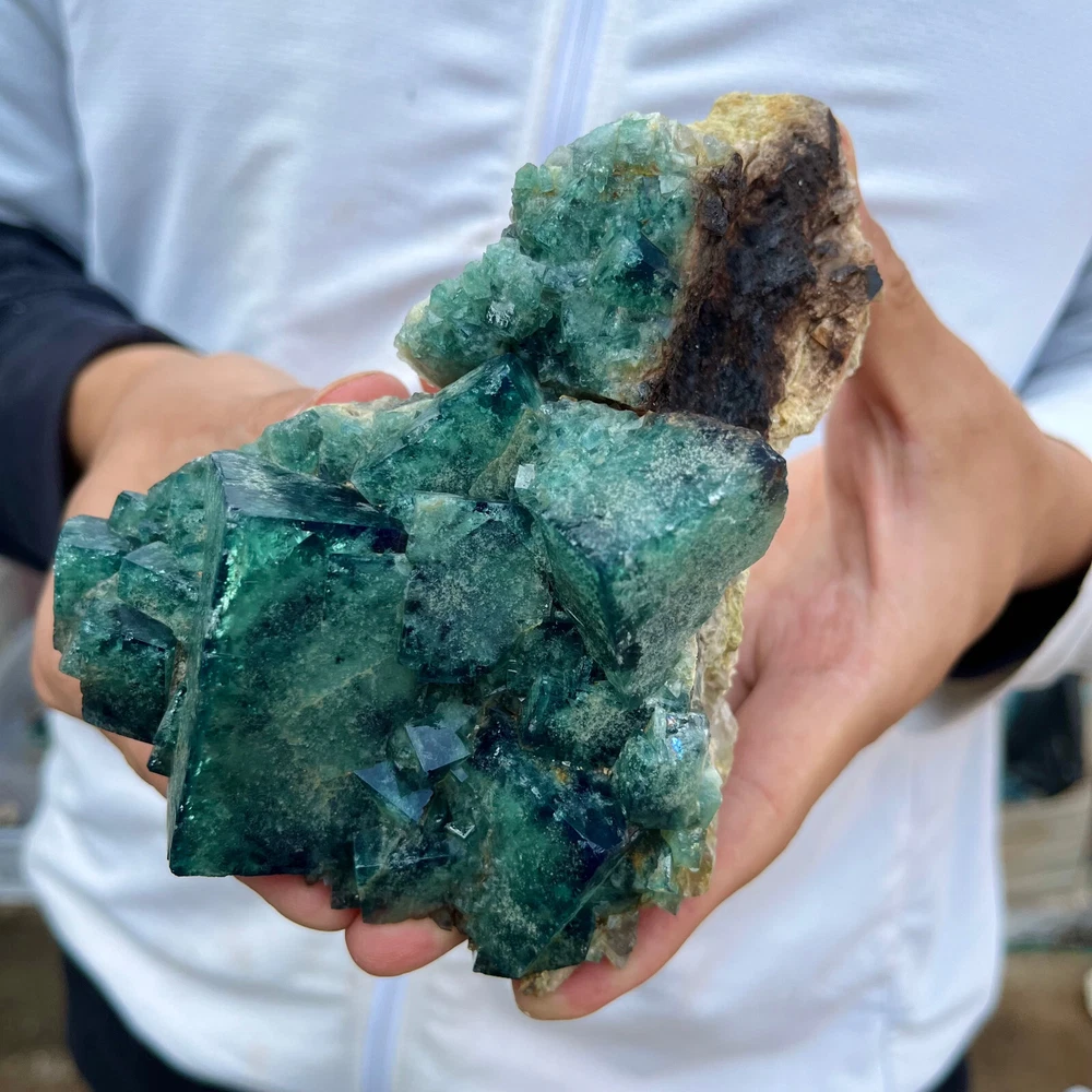 Amazing blue green hues in the fluorite. Item got here super quickly and it was wrapped completely in bubble wrap and tape. It looks exactly like the picture. It’s a solid chonk of a rock with interesting white flecks of crystal on the bottom. A+ transaction!!!