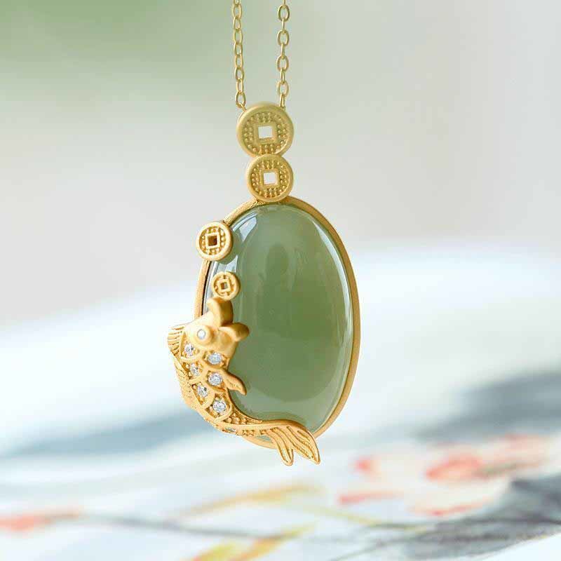 Description Green Jade Carp Pendant Necklaces 925 Silver Jewelry Necklace Amulet Natural Neckalce size:about 450mm. Pendant size:about 38*21mm. Random delivery, there may be a slight difference in color,Because it is naturally formed,please prevail in kind. We have our own processing factory, there is China's largest wholesale market, can give you the best quality. If you need more, we can give you a good discount!