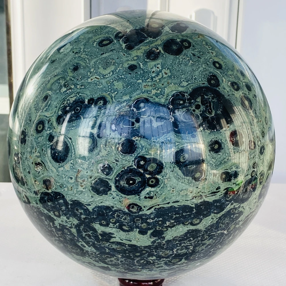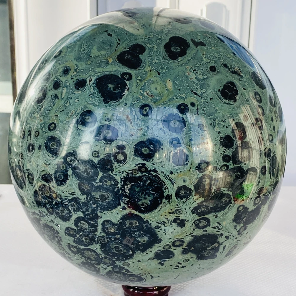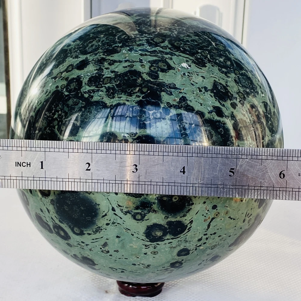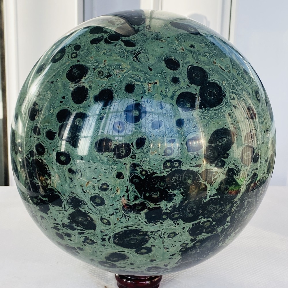 Wow, this Kambaba Jasper sphere is absolutely stunning! The deep green swirls are mesmerizing, and it has such a beautiful, solid energy. Holding this hefty, natural piece feels incredible. It's a true work of art from the earth, and the unique patterns are even more captivating in person. I'm in love with it!