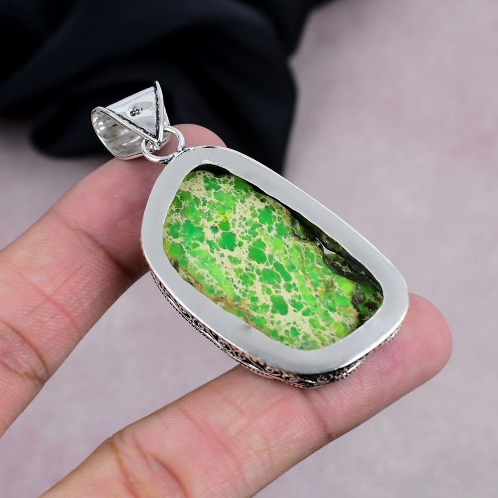 Natural Green Sea Sediment Gemstone 925 Sterling Silver Pendant Jewelry