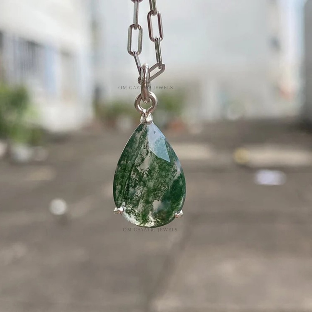 Add a touch of natural beauty to your outfit with this stunning handmade pendant. The pendant features a natural pear-shaped moss agate gemstone, set in a 925 sterling silver charm locket. The gemstone has a beautiful eye-clean clarity grade and a excellent cut grade. The pendant has a hook closure and is perfect for any occasion, including engagements, Mother's Day, Christmas, anniversaries, and birthdays. This pendant is a unique and personalized piece of jewelry that will make a great addition to any collection. It is nickel-free and has no antique or vintage features. The pendant was made in India and has a beautiful green color that will complement any outfit. The seller provides a warranty for this piece of jewelry, which is customized and perfect for those who appreciate nature and beauty. Natural Pear Moss Agate Pendant 925 Sterling Silver Handmade Gemstone Jewelry Gemstone: Moss Agate Stone Size: 9x12mm Stone Shape: Pear Stone Category: Faceted Metal: 925 Sterling Silver Please Note :- Chain is not included with Pendant