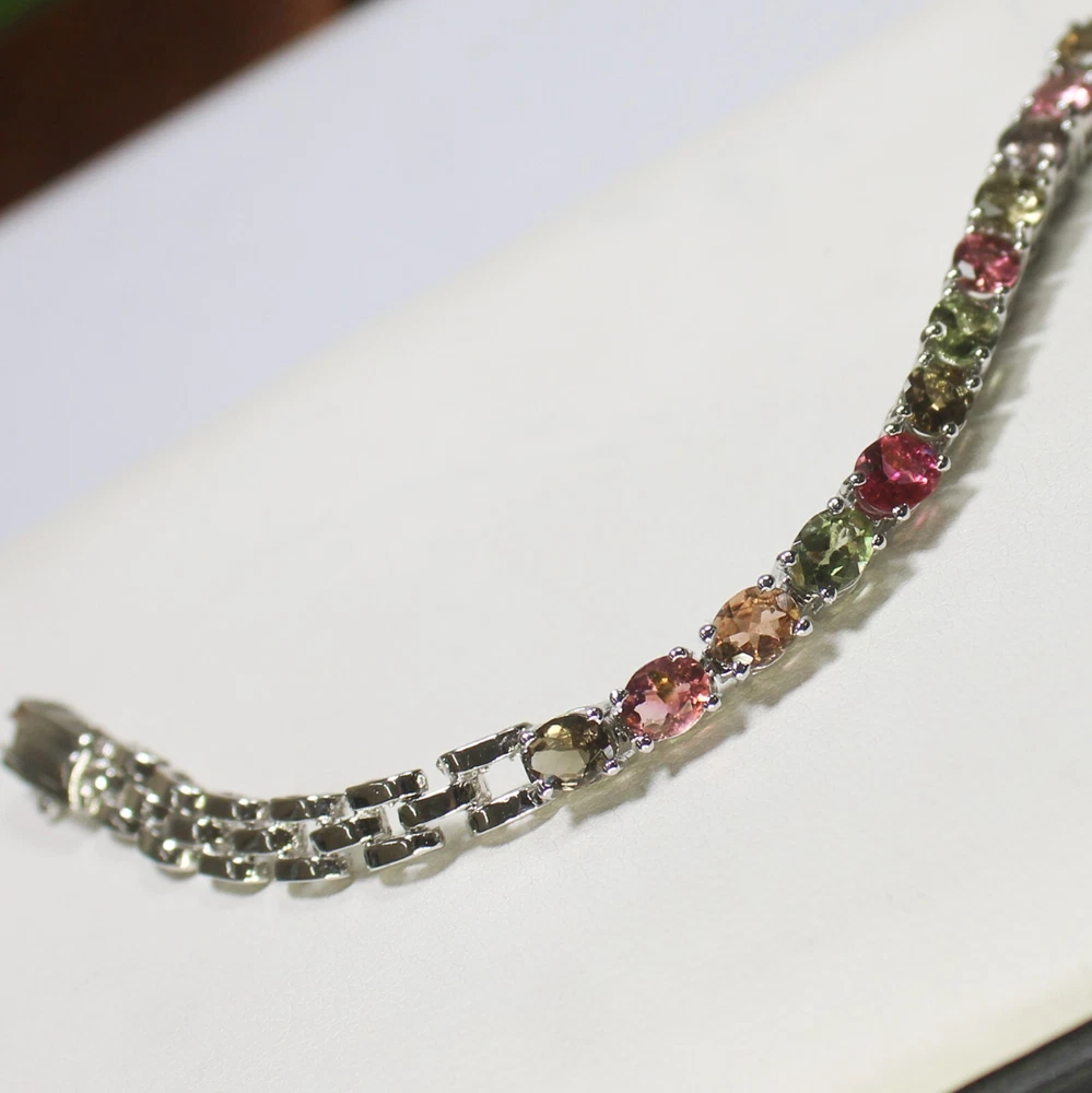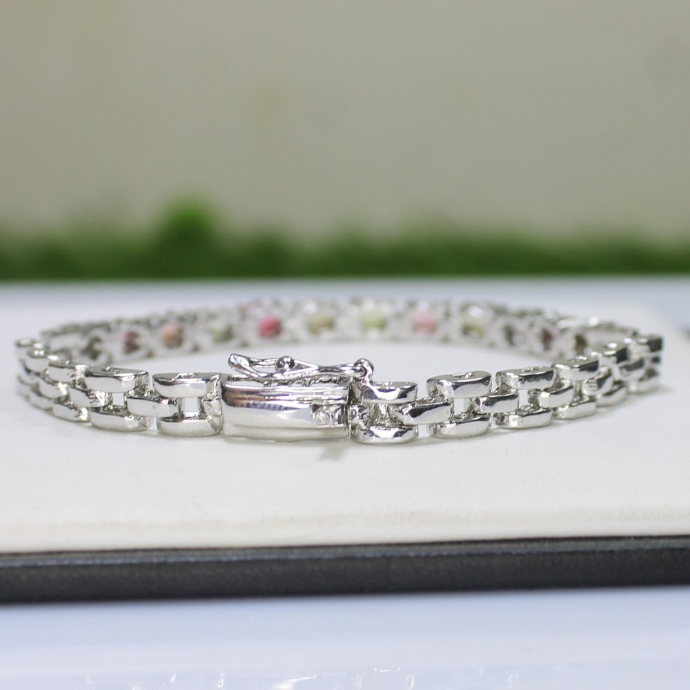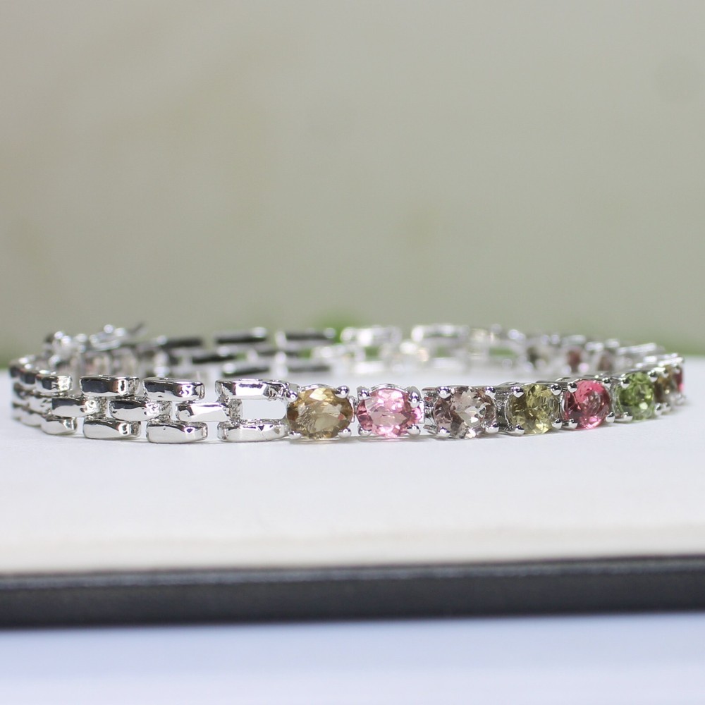 ARBIYA GEMS JEWELRY TYPE: SILVER BRACELET STONE: NATURAL MULTI TOURMALINE SIDE STONES: NO BRACELET SIZE: 7.5 INCHES BRACELET WEIGHT: 10.00 GRAMS BRACELET METAL: STERLING SILVER METAL PURITY: 925 TREATMENT: NATURAL COUNTRY OF ORIGIN: INDIA HANDLING TIME: 1-2 DAYS DELIVERY TIME: WE USUALLY TAKES 15-25 DAYS BUT MOSTLY IT DELIVERS TO CUSTOMERS WITHIN 15 DAYS RETURN POLICY: RETURN ACCEPTED ON MANUFACTURING DEFECT WITHIN 30 DAYS. RETURN GIVEN AS MONEY BACK OR REPLACMENT FEEDBACK POLICY: PLEASE LEAVE US A POSITIVE FEEDBACK IF YOUR ITEMS DELIEVERED IN GOOD CONDITION