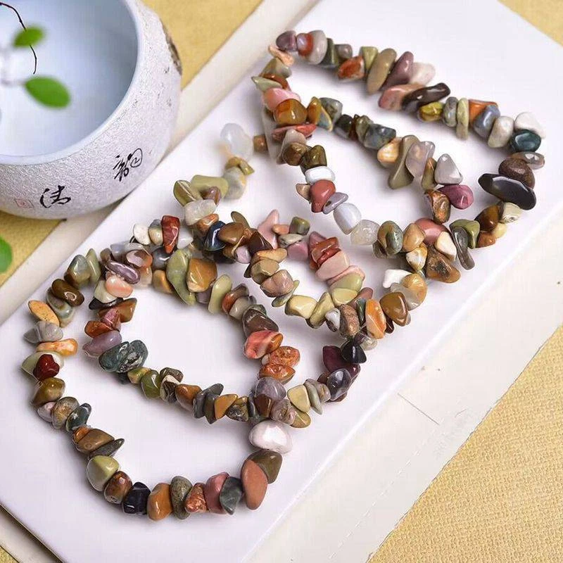 Store Categories Store Categories Quartz Crystal Ball Crystal Smoking Pipe Chakra Healing Stone Crystal Stone Ornament Crystal Point Stone Wand Crystal Jewelry Accessories Quartz Crystal Carving Craft Crystal Drinking Water Bottle Other Natural Quartz Crystal Chip Bead Stretch Bracelet Energy Gemstone Bangle Healing Product Description Features: -Color:Multicolored (Random) -Item:Handmade stone art craft -Net Weight:About 15-25g (Random) -Stone Bead Size:About 5-7mm (Random) -Total Circumference:About 16cm (Random) -Process:100% manual braiding chip bead string -Shape:Round circle string & Irregular tumbled stone -Feature:handmade weave stone bead stretchy bracelet -Material:Natural quartz crystal crushed rough stone bead -Type:Natural quartz crystal point stone bead bracelet vignette Highlight: -100% handmade and high qua lity -Perfect gift for festival,commemoration day -Perfect gift for yourself,families,friends,lovers -Can be used for healing,reiking,home decor,house treasure -Can help for degaussing, reducing radiation of home appliance effectively -Can help to balance your body and mind,promotes natural health,spiritual growth Package List: 1x Natural quart z crystal chip stone bead stretch bracelet amulet Important Notes: -The pictures may look larger than the real item or have color difference,please read the description carefully. -We will ship all items randomly,because it is natural,will never have the same one if the one as pictures show is sold. -The item you receive may have "ice cracks", it is naturally formed, not be damaged,this is normal for crystal,pls note this! Shipping Policy Returns Policy Feedback Policy Tax Policy Shipping Policy We will ship your parcel out ASAP once your order is confirmed,if you don't received it after estimated de livered day, please con tact with us to ask for help first! Returns Policy If you are not satisfied with the item,pls don't leave us nagative feedback first.you can request us t o return it in 30 days,we can offer refund or replacement! Feedback Policy You should obey the customs policy,it's your obligation and liability.so you should pay for any tax a nd custom duty incurred, be responsible for the failure deli very because of customs. Tax Policy You should obey the customs policy,it's your obligation and liability.so you should pay for any tax and custom d uty incurred, be responsible for the failur e delivery because of customs. Copyright © 2023 Dianxiaomi
