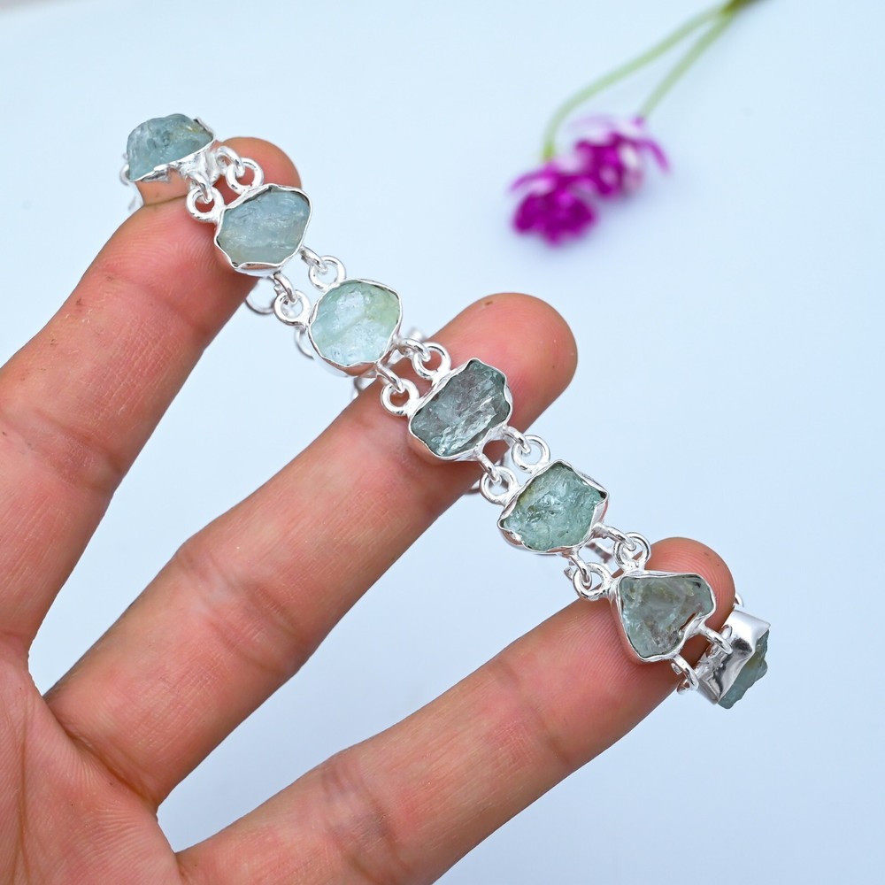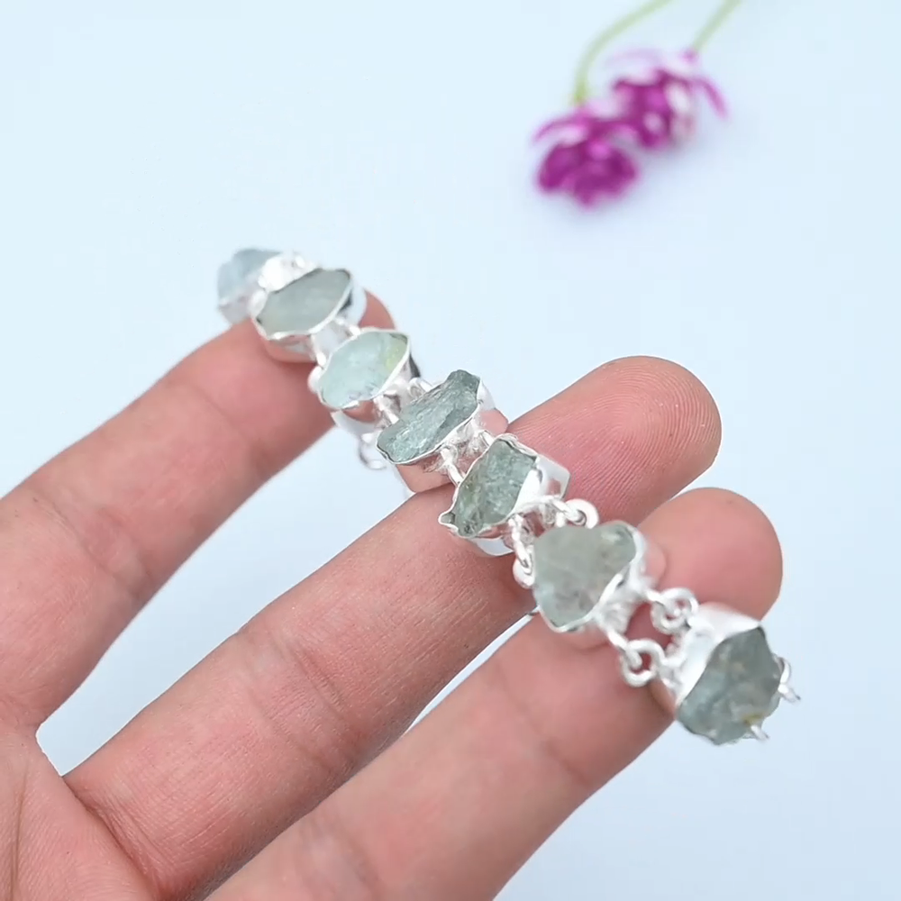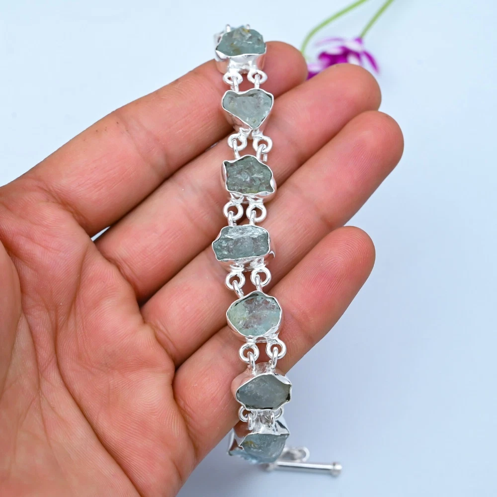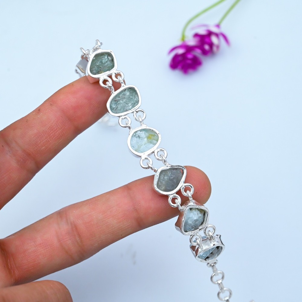 HomeNatural Raw Aquamarine Bracelet in 925 Sterling Silver Jewelry Gift