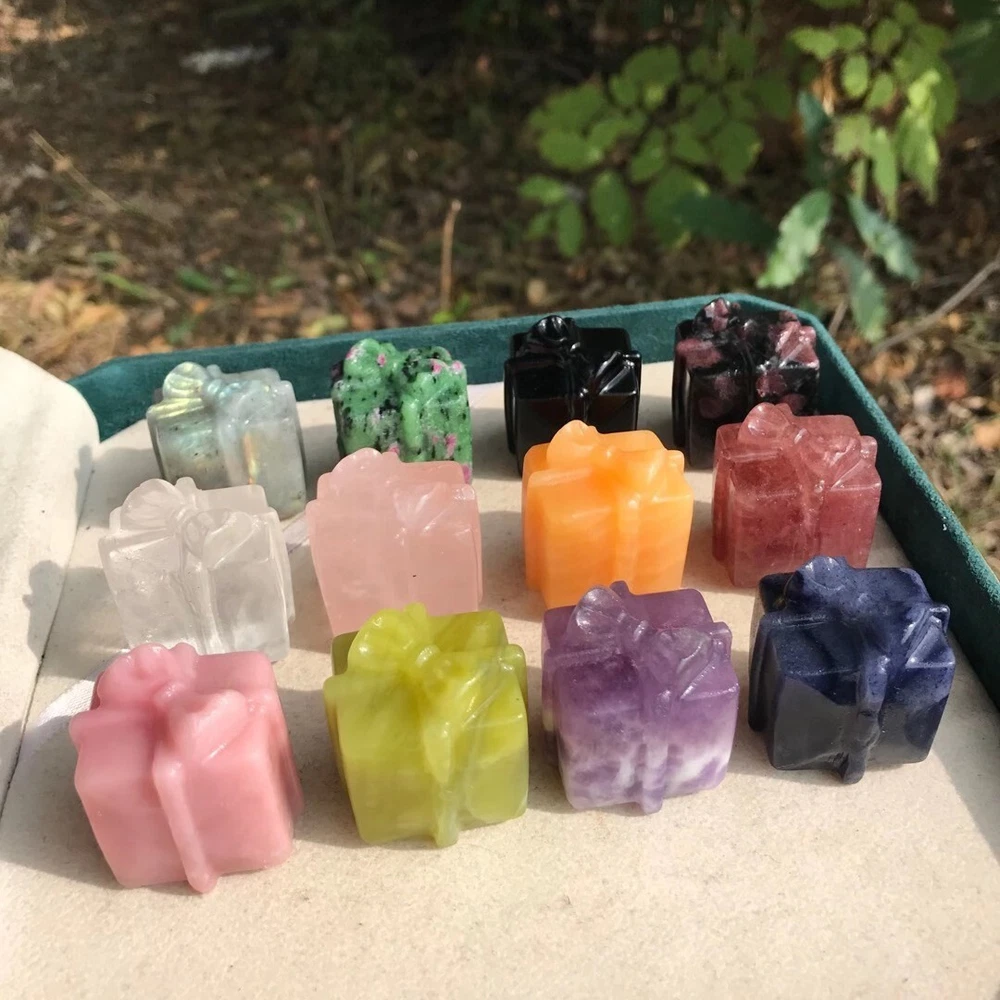 Natural Raw Orange Crystal Engraved Christmas Gift Box Reiki Healing 1pc