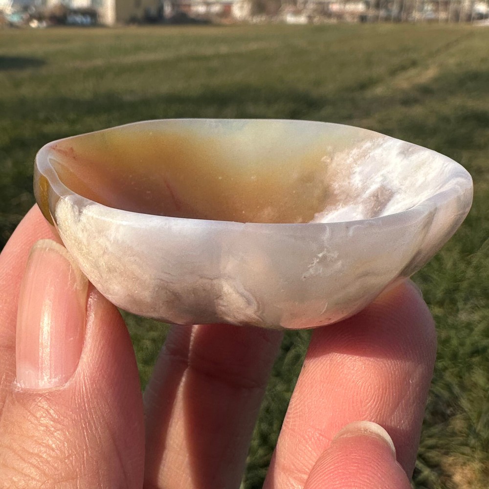 This stunning Sakura Agate skull bowl is a true work of art! The natural pink hues and intricate crystal patterns make it a mesmerizing decorative piece, perfect for crystal collectors or Reiki healing purposes. It's lightweight yet feels solid, with smooth polished edges. Arrived carefully packaged just as pictured—the delicate color variations are even prettier in person! Fast shipping and great seller communication. Absolutely love this unique spiritual centerpiece for my altar—it adds such positive energy to my space.
