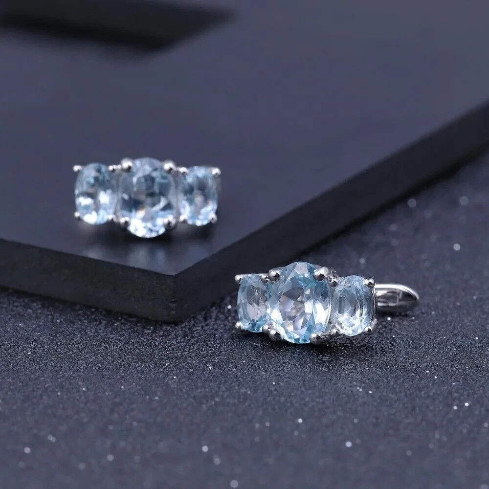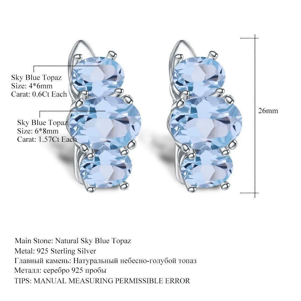 Theme:BeautyMain Stone Color:BlueHandmade:YesMaterial:GemstoneMain Stone Shape:OvalCertification:GTCMain Stone Size:6*8mm / 4*6mmBase Metal:Fine Silver, 925 Parts Per 1000Brand:UnbrandedOccasion:Anniversary, Birthday, Engagement, Valentine's Day, Wedding, PartyStyle:StudMetal Purity:925 Parts Per 1000Total Carat Weight:5.55CtMain Stone:TopazSecondary Stone:Sky Blue TopazMetal:Sterling SilverType:EarringsMain Stone Creation:Natural
