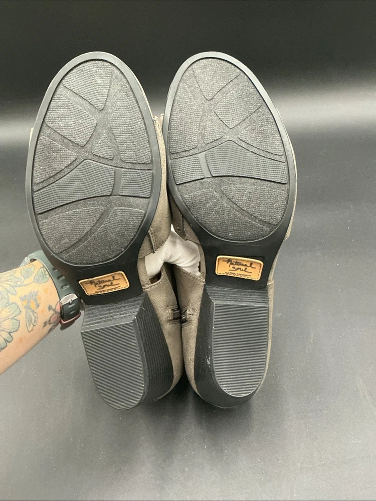 The Natural Soul Dylan Wedge Sandals in size 9.5 are stylish and comfortable sandals designed for women. Made with faux leather material and featuring a wedge heel style, these sandals in beige color are perfect for casual everyday wear. The Dylan model is known for its quality craftsmanship and design, making it a popular choice among women looking for a fashionable sandal option. Made in Vietnam, these sandals combine natural materials with modern design, making them a versatile and reliable choice for any wardrobe. Refer to photos for blemishes.