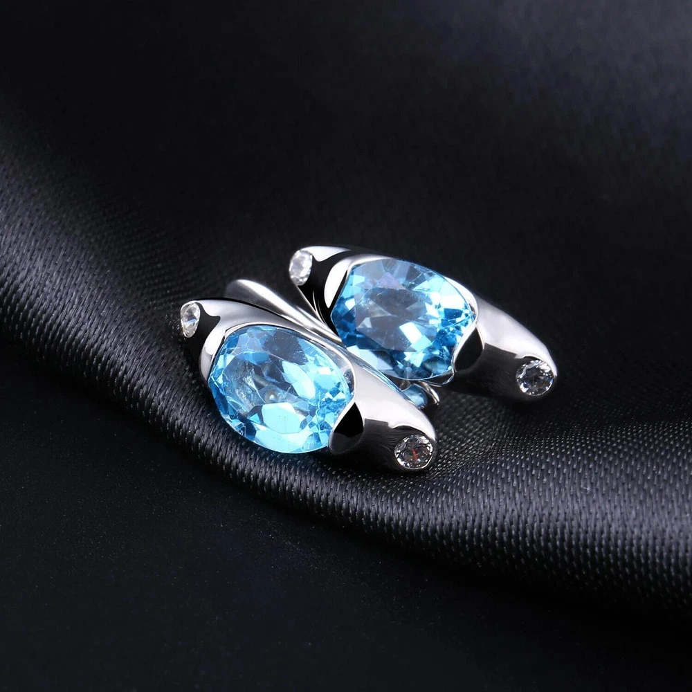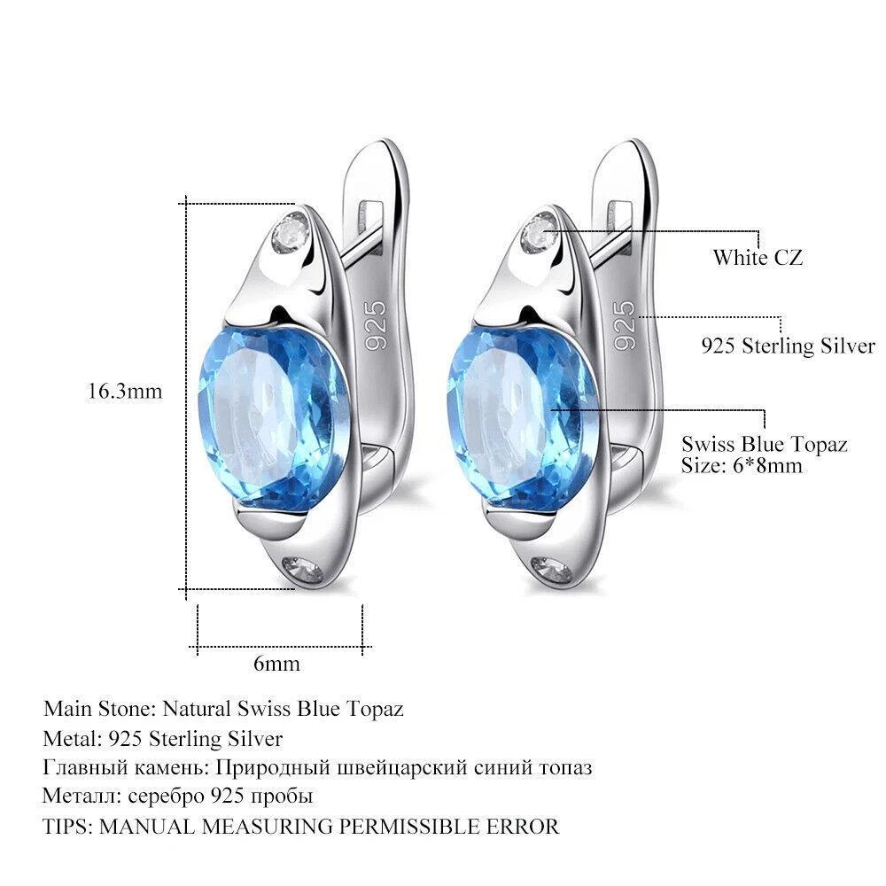 Main Stone Size:6*8mmBrand:UnbrandedSecondary Stone:Cubic ZirconiaMain Stone:TopazMain Stone Color:BlueMain Stone Creation:NaturalOccasion:Anniversary, Birthday, Engagement, Valentine's Day, Wedding, PartyMetal:Sterling SilverHandmade:YesMetal Purity:925 Parts Per 1000Theme:BeautyMaterial:GemstoneMain Stone Shape:OvalCertification:GTCStyle:StudType:EarringsBase Metal:Fine Silver, 925 Parts Per 1000