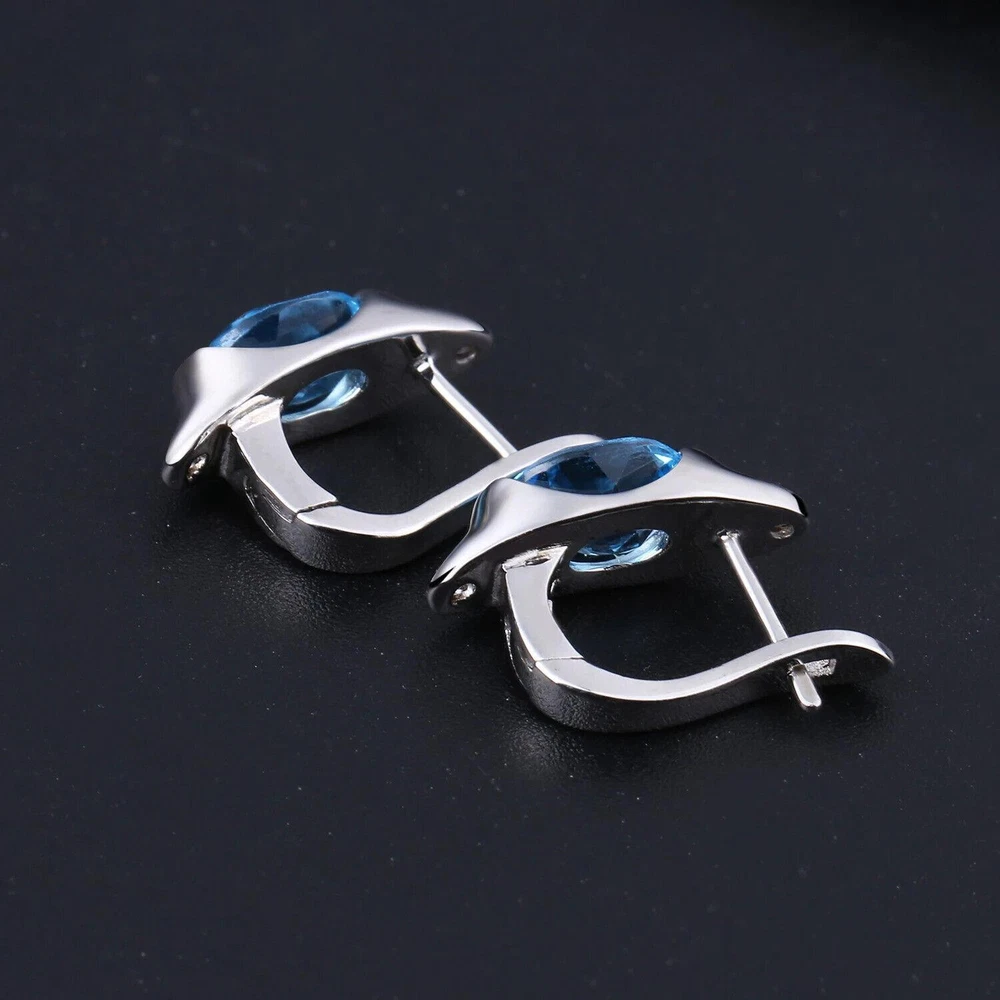 Natural Swiss Blue Topaz Gemstone 925 Sterling Silver Stud Earrings for Women