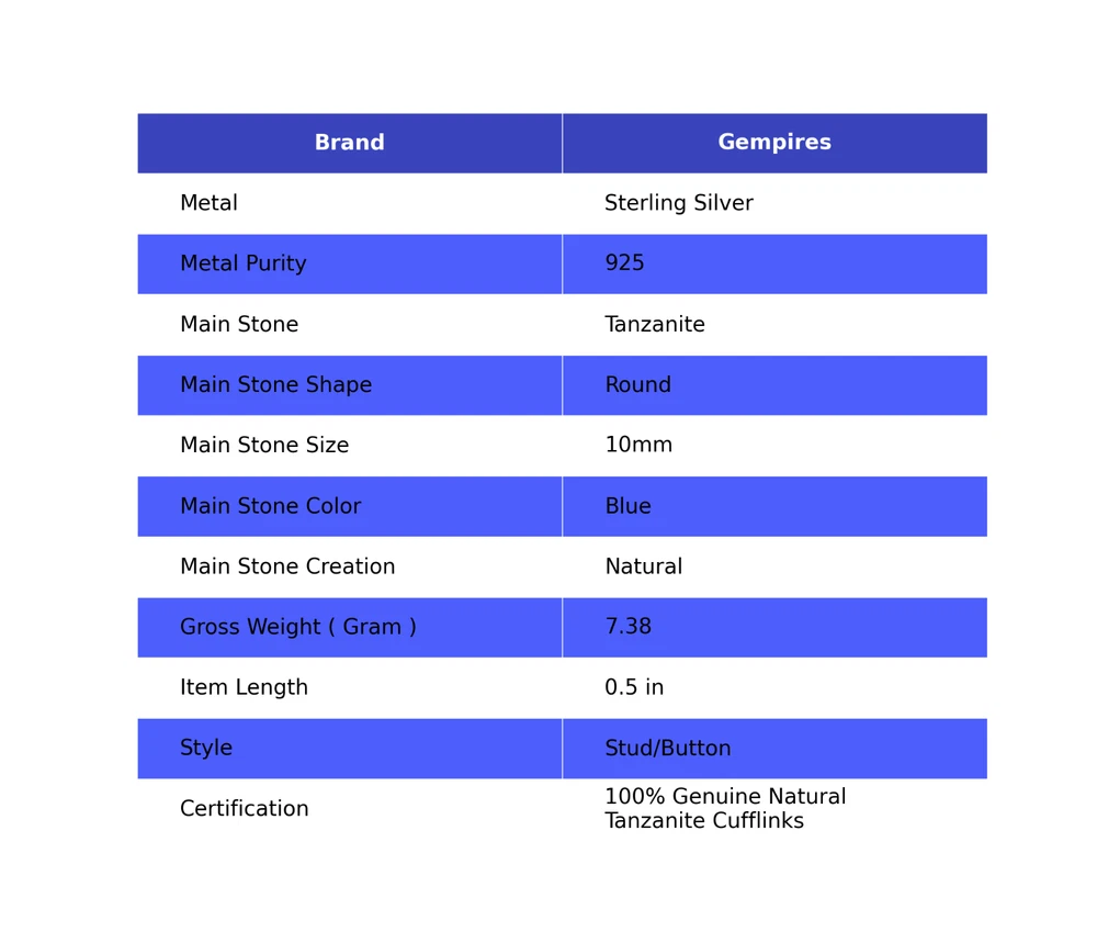 Welcome To Our Shop Gempires ------------------------------------------- A perfect blend of classy and elegant design Cufflinks featuring 925 Sterling Silver with Tanzanite. This is must to provide you an eye-catching attention. Natural Tanzanite 925 Silver Blue Luxury Classic Valentines Cufflinks Jewelry Check My Other Cufflinks Listings : Click Here SKU: CL-4-12 Gemstone: Tanzanite Stone Shape: Round Metal : 925 Sterling Silver Length: 0.5 Inches ___________________________________________________________________ Shipping Handling - Free Standard Shipping all over the world Handling Time - 2 to 5 BUSINESS Days Delivery Time - 7 to 20 Days ( Various on destination ) _________________________________________________________________ Returns - 1.We provide a 100% Money Back Guarantee, excluding shipping costs, within 30 days from the date of item receipt. 2.The item must not be altered or damaged in any way shape or form. 3.Upon receipt of the aforementioned items, your payment will be promptly refunded. 4.Please be so kind as to contact us via email in order to acquire comprehensive return instructions before proceeding with the return of the merchandise. 5.Kindly be advised to allocate a maximum period of 1 business day for the processing of all returns, in order for the appropriate credit to be applied. 6.Sizing does not affect the return policy. _________________________________________________________________ FAQ's - Q.1 ARE THE ITEMS YOU ARE SELLING BRAND NEW? We exclusively offer brand-new products, refraining from the sale of pre-owned jewelry. Our entire jewelry collection is composed of 100% natural, conflict-free pieces. We do not engage in the trade of imitation or lab-grown gemstones and diamonds. Q.2 WHAT ARE YOUR BUSINESS HOURS? we operate 24x7 as we have a dedicated team who works in different shifts to deliver the services to our valuable customers. ________________________________________________________________ Gempires is committed to delivering customers an unparalleled experience through the provision of exquisite handmade jewelry, meticulously crafted to uphold the most exacting standards of quality. Our operations encompass dual roles as both discerning connoisseurs and skilled artisans within the realm of jewelry making. We proudly hold an extensive proficiency in the fine art of enhancing gemstones, allowing us to harmonize them seamlessly with diverse aesthetic inclinations. We are delighted to extend to you the privilege of curating your very own jewelry collection. This collection will be graced by the presence of genuine and splendid natural gemstones, each possessing an innate authenticity and beauty that is truly unparalleled. **** STAY BLESSED ALWAYS*****