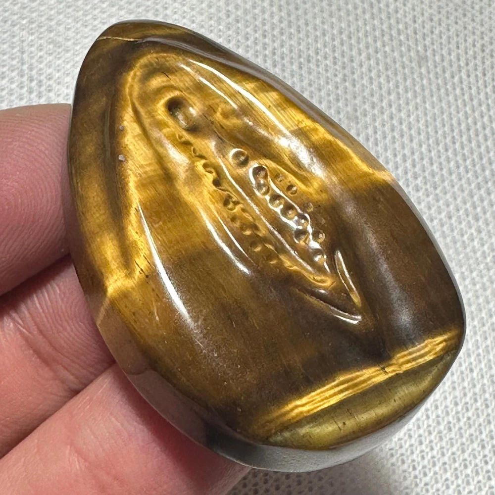 This unique Tiger Eye skull is stunning! The detailed carving and natural crystal shine make it a powerful piece for healing or display. The craftsmanship is impressive, and it arrived quickly, well-packaged. Perfect for collectors or spiritual use—love the earthy energy it brings! Highly recommend for anyone drawn to mystical, handcrafted art.