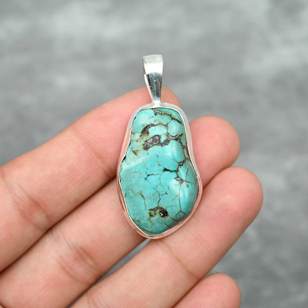 HomeNatural Turquoise Gemstone Handmade Jewelry 925 Sterling Silver Pendant For Gift
