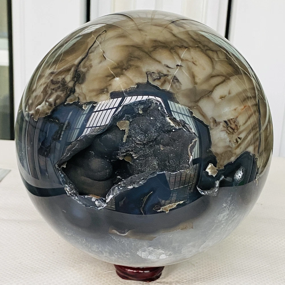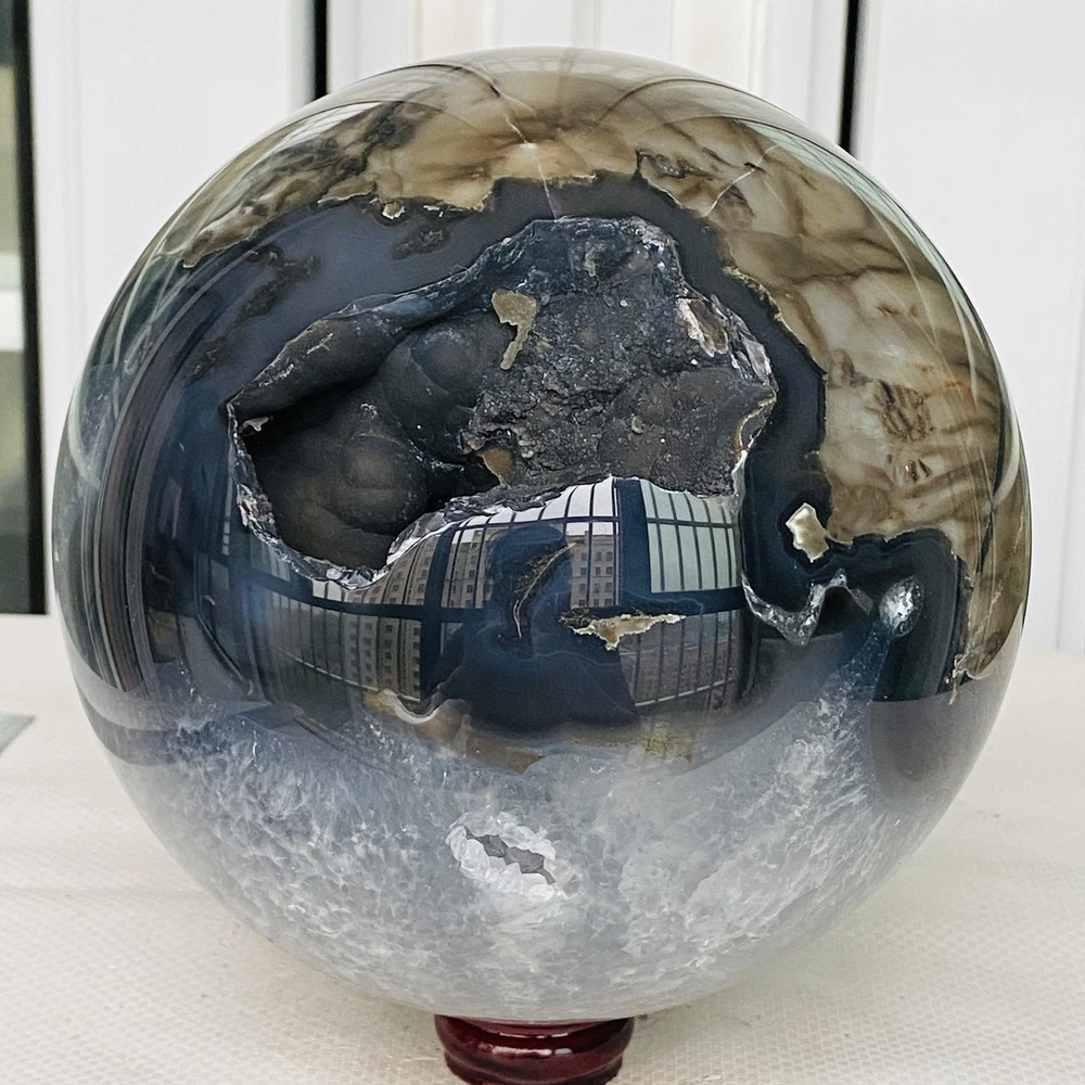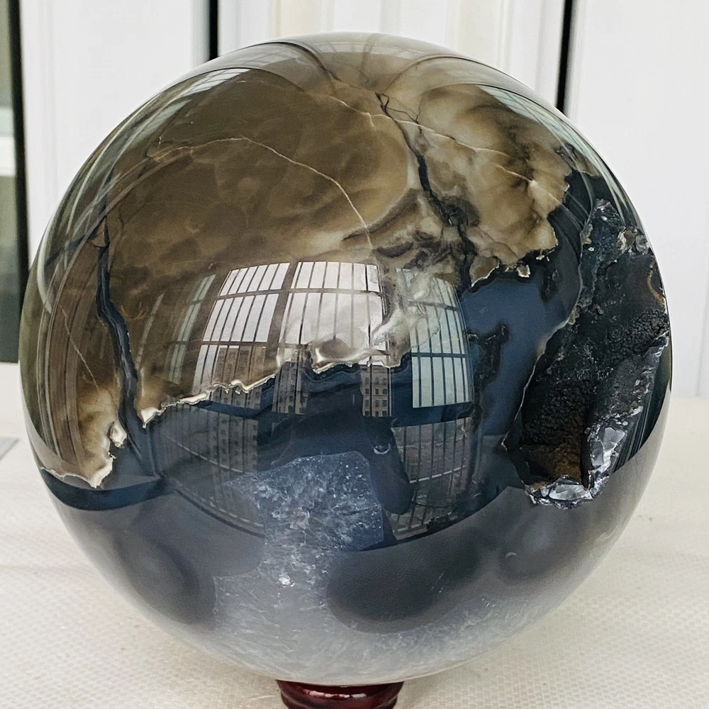Natural Volcanic Agate Crystal Sphere 6120G UV Reactive Healing Stone