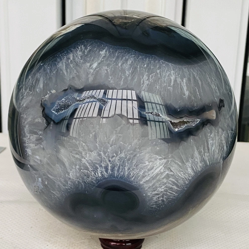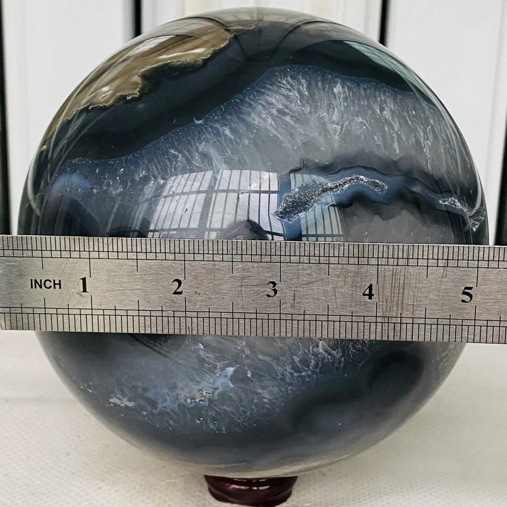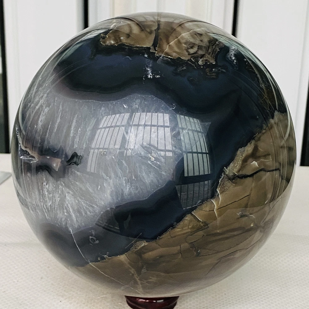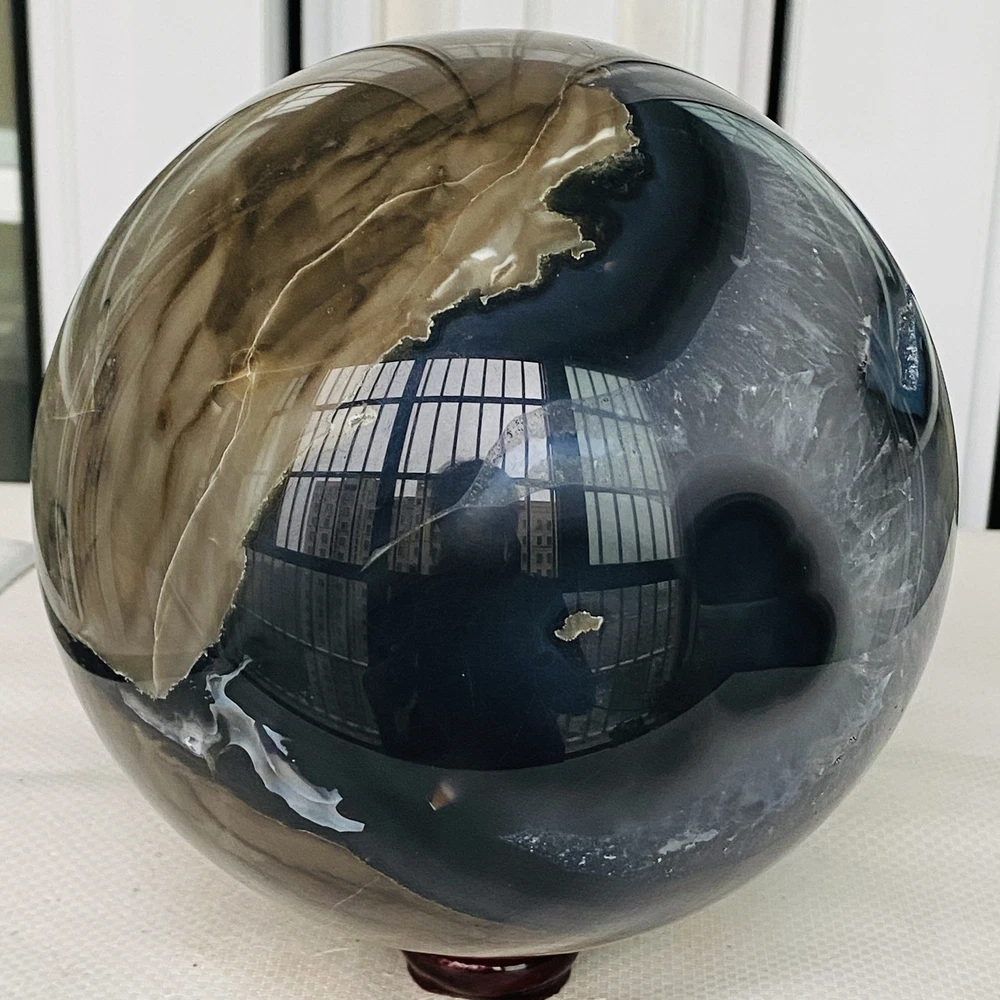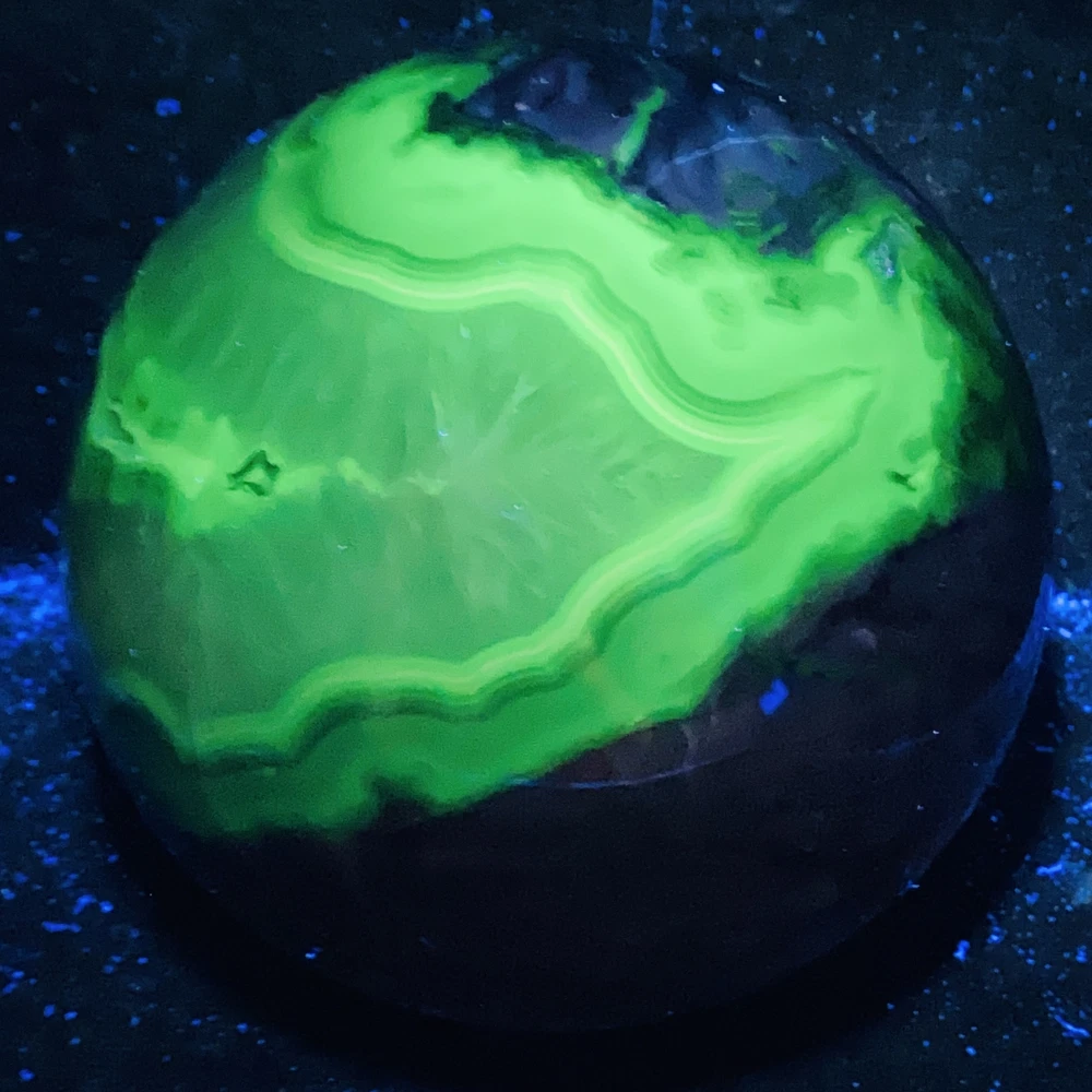 Natural Volcanic Agate Crystal Sphere 3140G UV Reactive Healing Stone