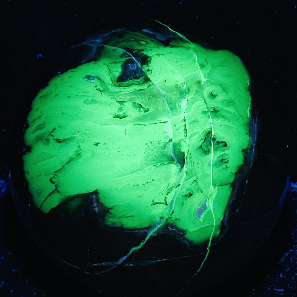Natural Flame UV-reactive 4420G stone sphere for reiki healing