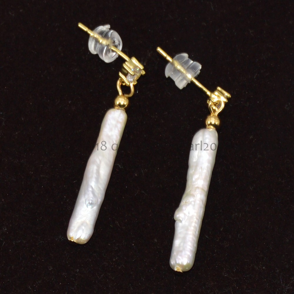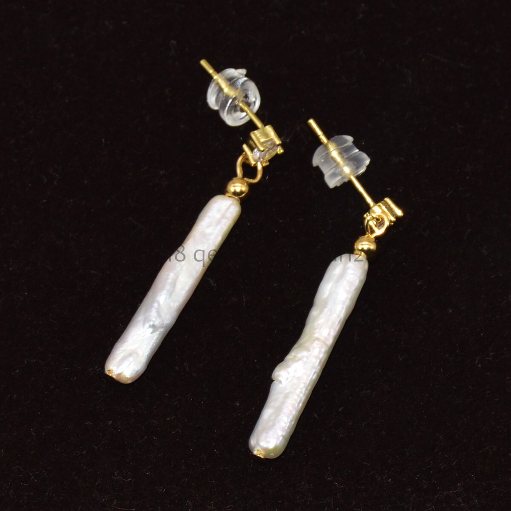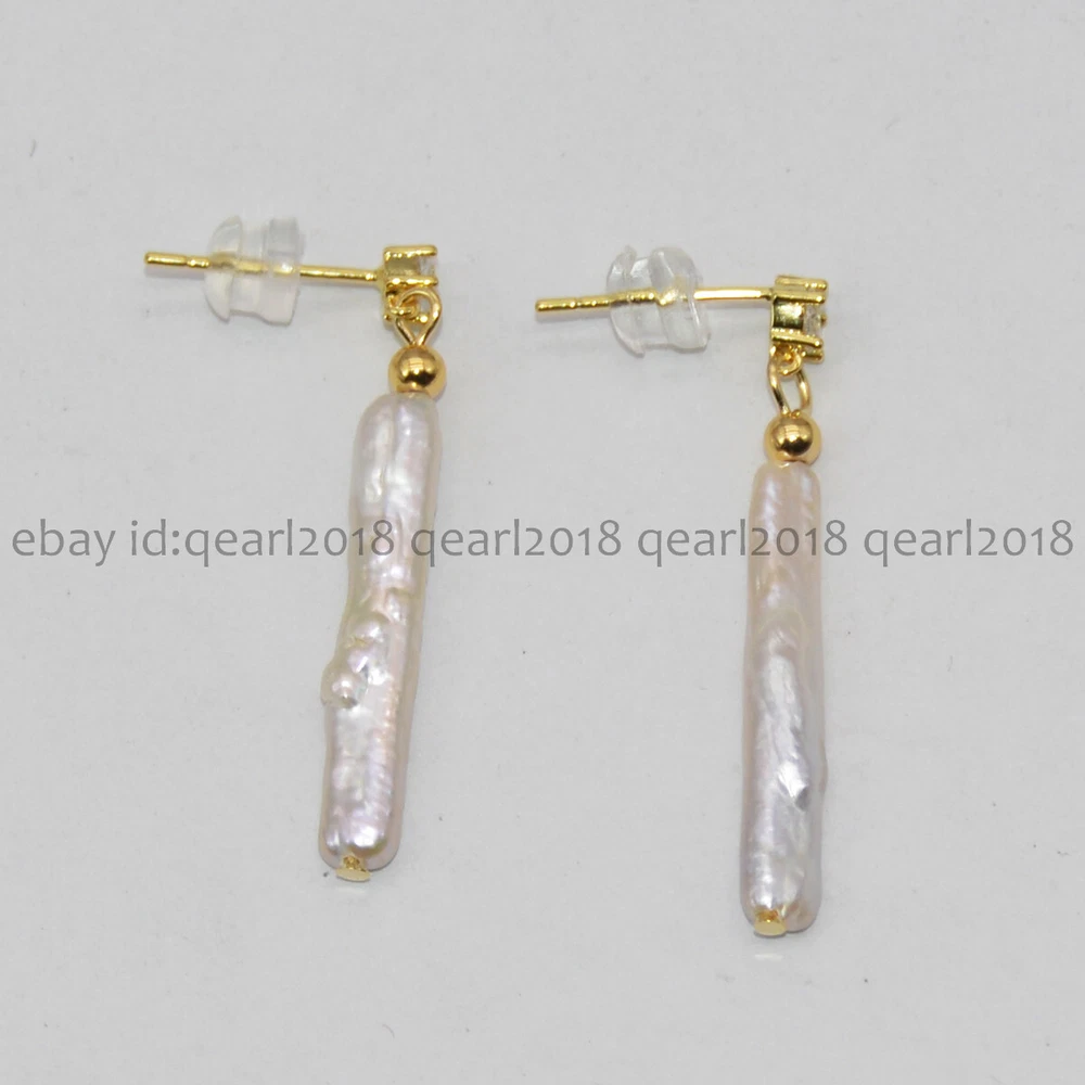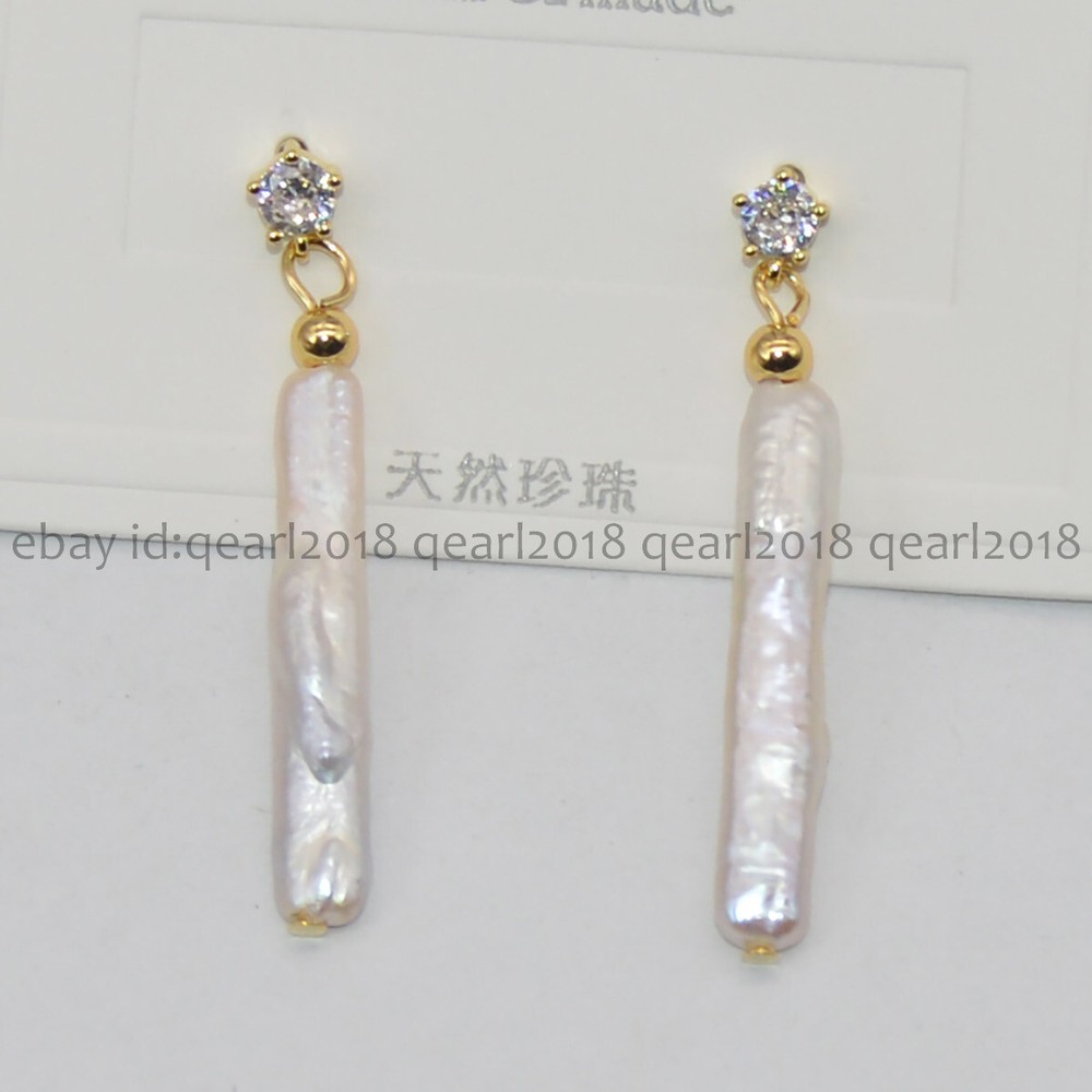 Natural White Baroque Freshwater Pearl Dangle Stud Earrings 5x25mm