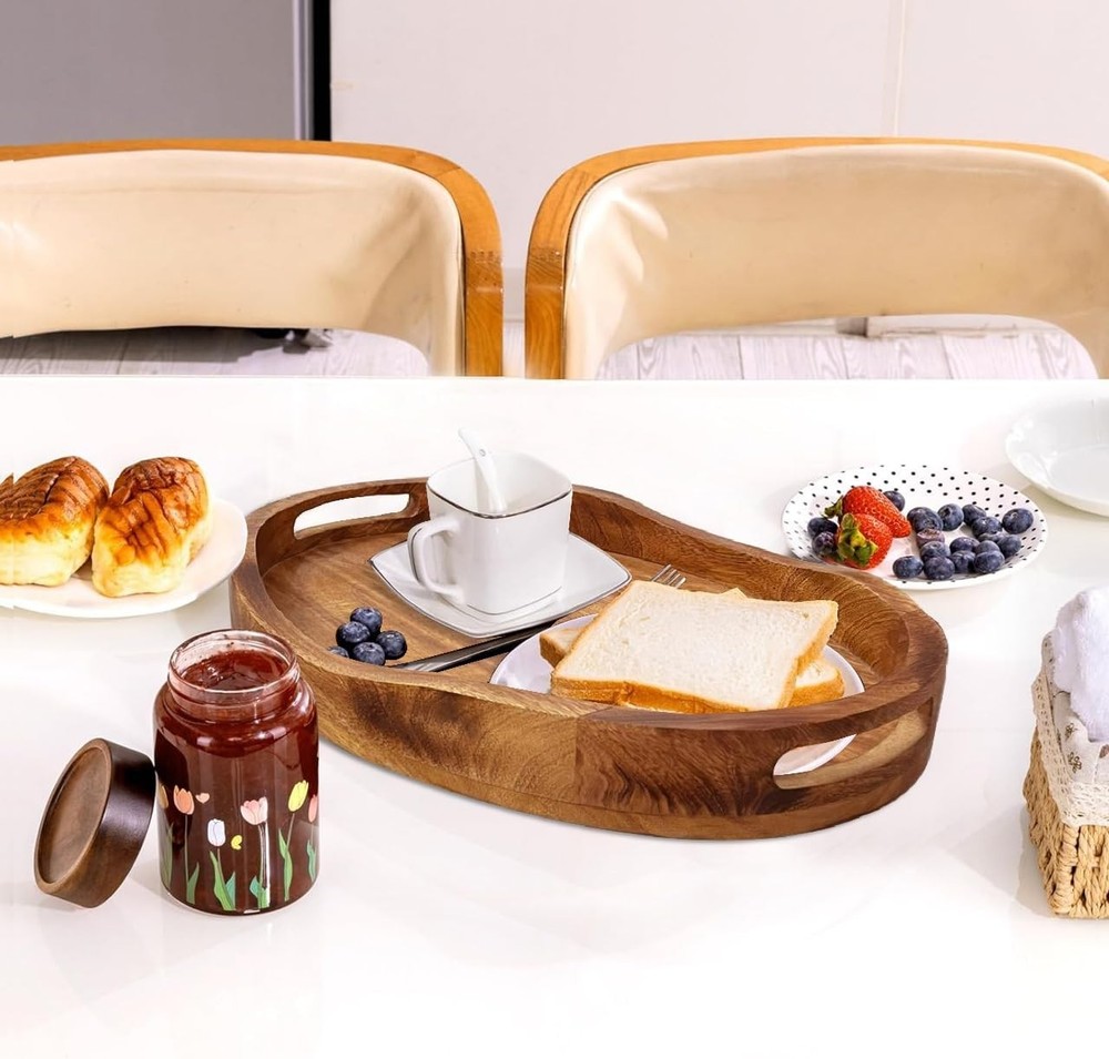 This beautiful wooden tray is both stylish and practical! The natural mango wood gives it a warm, rustic charm that fits any decor. Perfect for serving snacks, displaying fruit, or organizing essentials—it’s sturdy and well-crafted, adding a cozy touch to any room. Love the size—just right for coffee tables or countertops. A must-have for those who appreciate artisanal home accents!