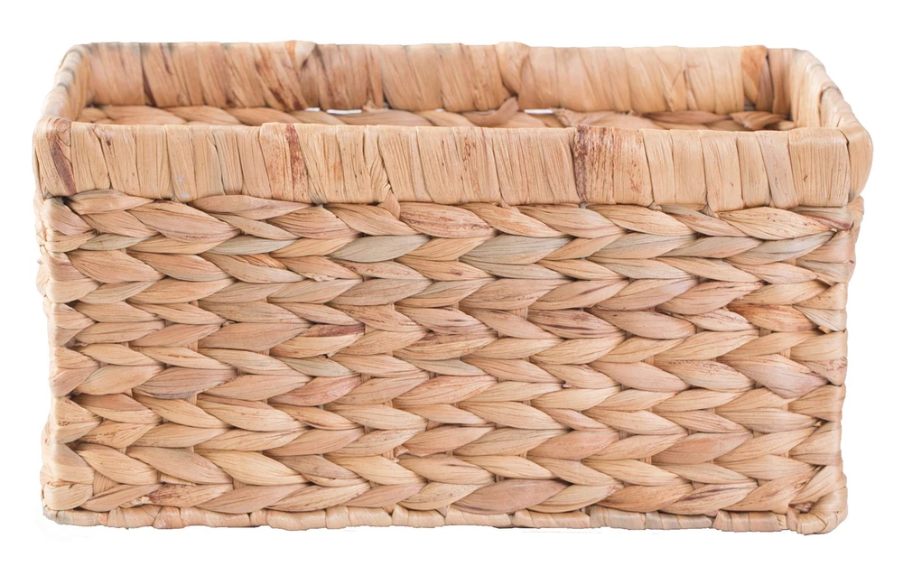 Organize, , and and decorate with this water hyacinth basket. Designed to hold books, towels, or vanity items this basket allows you to organize and add a natural look to your closet or counter display. Natural water hyacinth composition invites rustic charm in any room placed and cutout handles allows you to easily carry around. For a rustic themed coffee , closet organization, or countertop decoration this basket makes rustic decor proud. Woven out of durable water hyacinth wicker material Fits in perfectly with any lodge, cabin, or rustic decor theme Multi use storage options Cutout handles for easy carrying