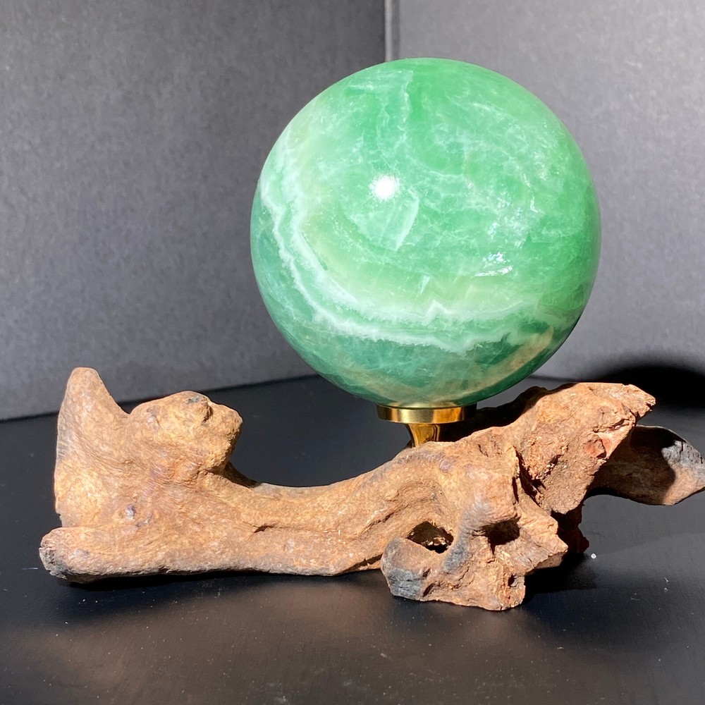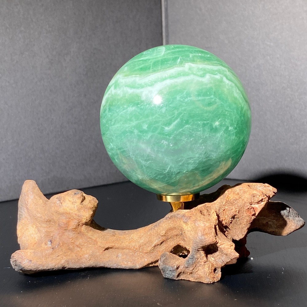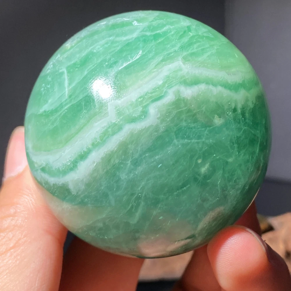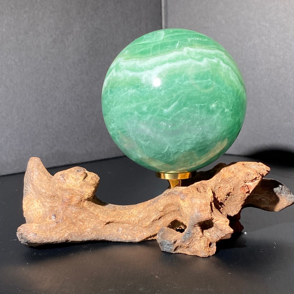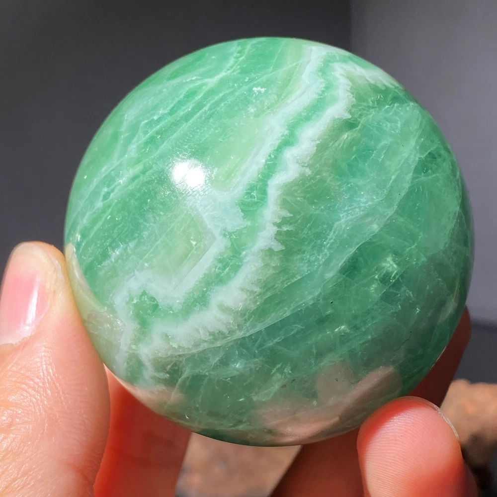 Received exact sphere pictured and described in the listing. An excellent, cleanly shaped stone with a good finish polish. Colors are bold and bright. Even better in hand, than it appeared in its listing photos. Communication with the shop was good. Shipping time from mainland China very acceptable, in light of the distance traveled. Sphere was delivered in good order and perfect condition. Well pleased with my blue/green Turquoise sphere. Good job by this eBay seller.