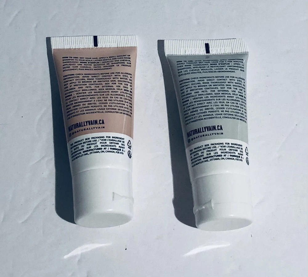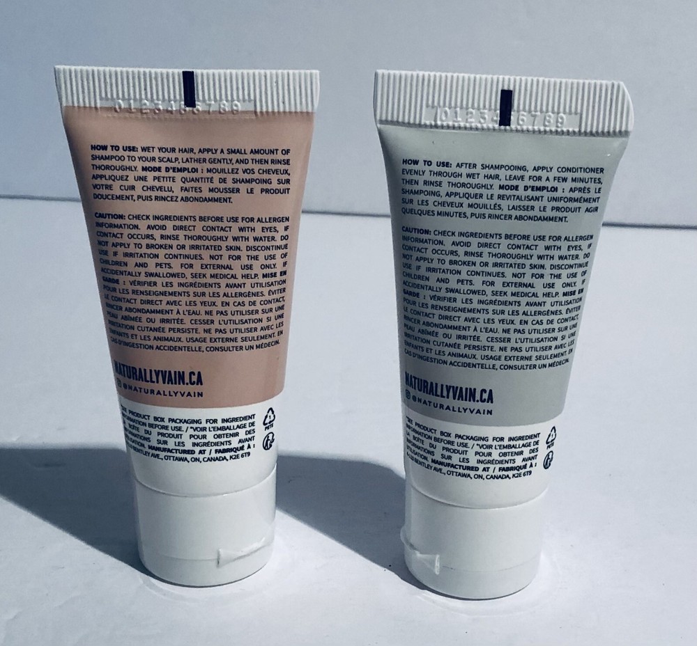 Naturally Vain Hair Shampoo and Conditioner Travel Set 1 fl oz Each