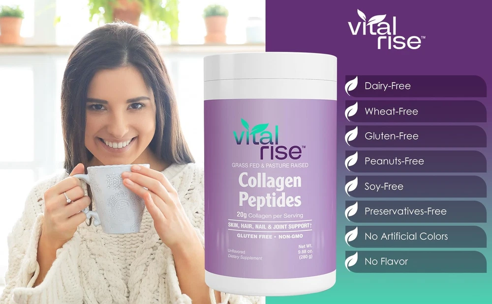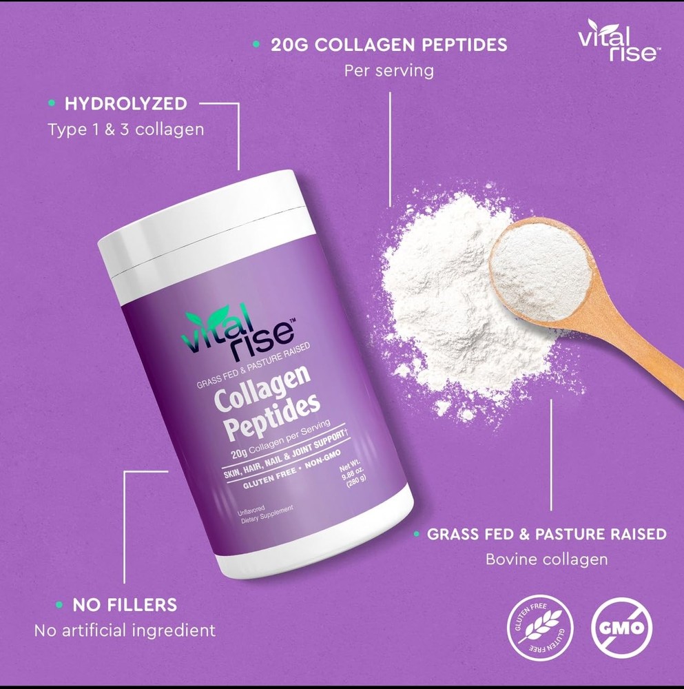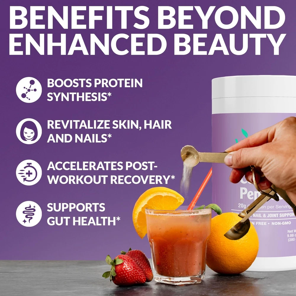 Experience the transformative power of Collagen Peptides, specially formulated for women. Providing 20g of Grass-Fed, non-GMO bovine collagen per serving, our formula is free from sweeteners, flavors, gluten, dairy, or soy. Collagen, the body's most abundant protein, forms the foundation of connective tissues such as hair, nails, tendons, ligaments, and skin. It helps maintain skin elasticity and suppleness, while also contributing to the toughness of tendons and ligaments. As we age, collagen production naturally declines, leading to sagging skin and achy joints. Collagen Peptides Powder contains hydrolyzed type 1 & 3 collagen, which supports skin, muscle, and bone health.* This hydrolyzed form is easily absorbed, allowing amino acids like glycine, proline, hydroxyproline, and alanine to promote collagen synthesis more effectively within the body. Discover Collagen Peptides as your secret to radiant skin, strong hair, and healthy joints. Enriched with pure collagen protein, our formula rejuvenates from within, reducing wrinkles and supporting mobility.* Elevate your wellness routine with and experience the difference firsthand. Healthier Skin, Hair, and Nails: Made with 20g of hydrolyzed collagen peptide per serving, our collagen makes your skin glow, boosts hair growth, and strengthens your nails, enhancing your body’s natural beauty so you look young and radiant.* Joint & Bone Support: Packed with essential amino acids for women, our collagen powder strengthens and lubricates your joints, reducing inflammation and easing pain from arthritis and stiffness.* Taste-Free Convenience: Enjoy all the benefits of collagen with our unflavored collagen protein powder. It blends seamlessly into any beverage without changing the taste. Pure and Simple for Your Diet: features pure hydrolyzed peptides from grass-fed, pasture-raised bovine sources with zero artificial fillers. Perfect for paleo, keto, and dairy-free diets, collagen easily integrates into your daily routine. Enjoy enhanced benefits with just one scoop in your morning coffee, smoothie, oatmeal, and more. Formulated With Type I & III Peptides: These peptides are renowned for their ability to enhance skin elasticity and reduce wrinkles. These peptides also play a crucial role in supporting joint health and mobility, providing essential support for maintaining flexibility and reducing discomfort. Additionally, the collagen peptides in Collagen contribute to stronger hair and nails, promoting vitality and resilience. Moreover, they support gut health and digestion, aiding in the maintenance of a healthy digestive system.* Effortlessly Dissolves: Our hydrolyzed collagen peptides powder dissolves quickly in both hot and cold drinks. Simply add and stir into your coffee, smoothie, oatmeal, and more for an easy daily boost. Ethically Crafted and Made in the USA: At , we take pride in our sustainable and traceable sourcing of our collagen. Put your trust in a product that is both effective and responsibly produced, with a commitment to our environment.