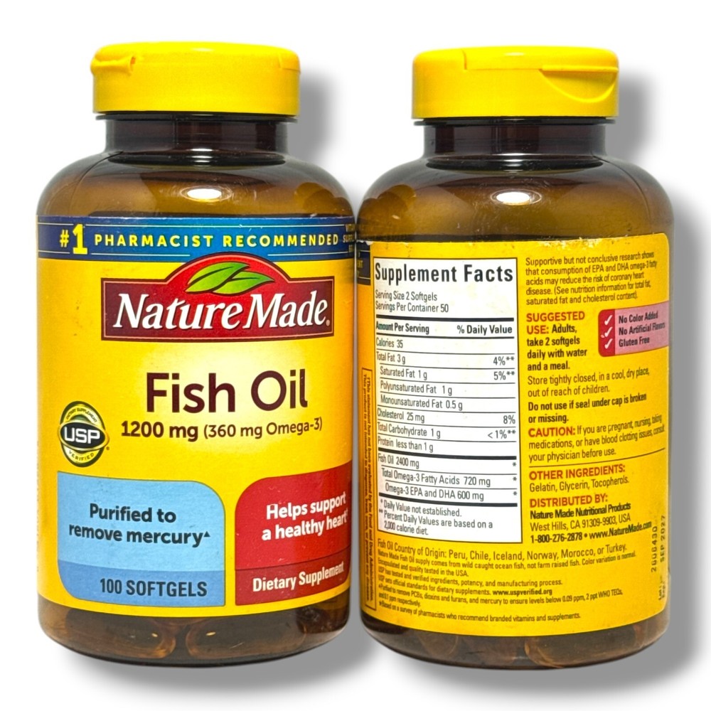 2X Nature Made Fish Oil 1200mg (360 mg Omega-3) Dietary Supplement -100 Softgels- LOT OF 2 EXP 09-2027
