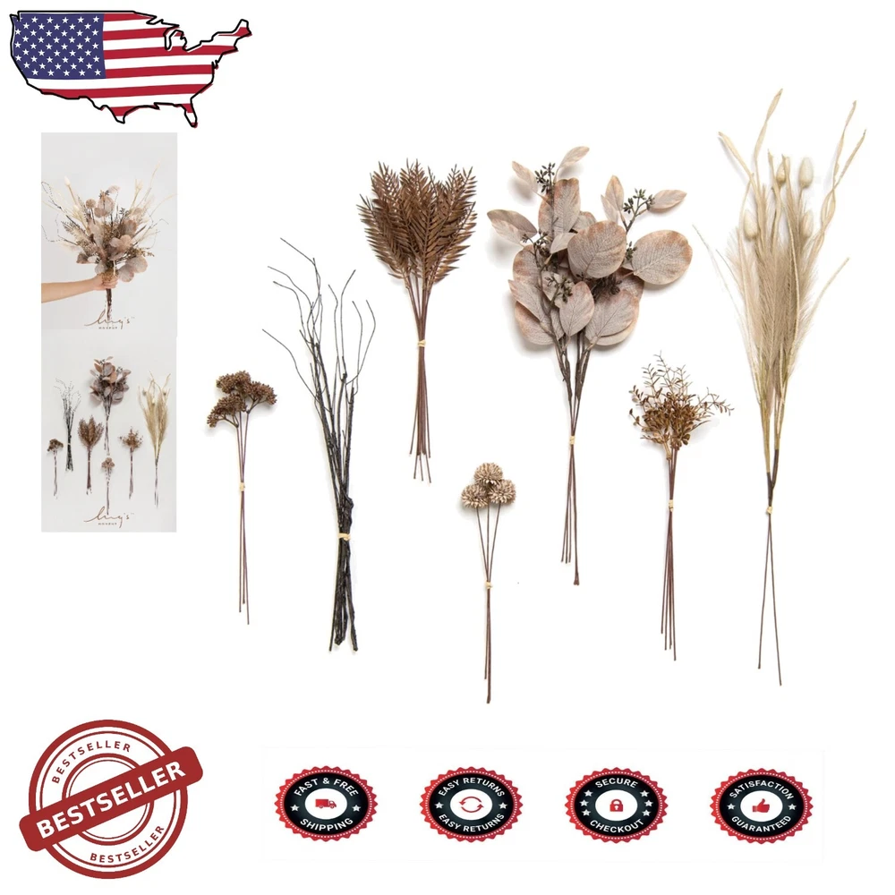 Nature-Inspired Faux Greenery Picks Box - DIY Wedding & Home Decor Solutions ‹ › ‹ › ‹ › ‹ › Nature-Inspired Faux Greenery Picks Box - DIY Wedding & Home Decor Solutions What You Get: Ferns x5 Dry Twigs x5 Coffee Seeded Eucalyptus x5 Seeded Pampas x2 Coffee Tiny Branch x5 Dandelion Seed Head x3 Coffee Wild Fruit x3 Premium Material: Leaves and flowers made of high-quality silk and plastic. Stems crafted from iron wire wrapped with brown floral tape, allowing for easy bending and cutting. Realistic Look: Inspired by the aromatic essence of coffee, these picks seamlessly elevate any decor project. Perfect for creating stunning bouquets, centerpieces, kissing balls, and boutonnieres. Can stand alone as a breathtaking bouquet, bringing rustic charm to any setting. Long-term Storage: Vivid and natural color ensures these artificial flowers remain beautiful for years. Ideal for weddings, home decoration, and various special occasions - all without the hassle of maintaining fresh plants. Satisfied Customer Service: With over 15 years of experience in wedding decoration, we guarantee excellent customer service. Please reach out with any questions or suggestions, and our dedicated team will respond promptly. Why Choose Our Nature-Inspired Faux Greenery Picks Box? Transform your space with the enchanting beauty of our Nature-Inspired Faux Greenery Picks. This meticulously curated collection offers endless possibilities for DIY enthusiasts, allowing you to craft unique floral arrangements that echo the elegance of nature, without the upkeep. Embrace the sophisticated charm and grace these picks bring to any occasion, ensuring every moment is infused with a touch of nature's splendor. Order your Nature-Inspired Faux Greenery Picks Box today and let your creativity flourish! Shipping Free & Fast Shipping - We offer free shipping to most of the USA with a normal delivery time of 3-7 days. However, due to the current situation, additional delivery time (up to 3 weeks) may be required for some items. Alternative Carriers - We may use alternative carriers (e.g. USPS, FedEx, UPS, etc.) to ensure your package arrives safely and on time. Due to the use of multiple carriers, we are unable to provide a tracking number automatically. Handling Time - Orders are processed and shipped within 1-2 business days of receiving cleared payment. Shipping Restrictions - Shipping to Alaska, Hawaii, Puerto Rico, Guam, and other US territories may incur shipping charges or delivery restrictions. Please contact us before ordering, or your order can be refunded/cancelled. State Restrictions - There may be restrictions based on your state of purchase. For example, certain items may not be shipped to California due to state regulations. Contact for Tracking Updates - If you require tracking updates or have any concerns about the delivery of your order, please feel free to contact us, and we will be happy to assist you. Return 30-Day Hassle-Free Returns - We want you to be completely satisfied with your purchase. If you are not, you can return the item within 30 days of receiving it for a full refund or exchange. Easy Return Process - To start a return, simply contact us and we will provide you with a prepaid return shipping label and detailed instructions. Restocking Fee - There are no restocking fees for returns. However, the buyer is responsible for return shipping costs if the return is not due to a seller's error. Refund Processing Time - Refunds will be processed within 5 business days of receiving the returned item in its original condition. Payment We accept all major credit cards, PayPal, and Apple Pay for your convenience. Your payment information is secure and encrypted to ensure a safe and seamless transaction. Please complete your payment within 3 days of purchase to avoid any delays in shipping. Feedback Your feedback is extremely important to us. We strive to provide the best products and customer service possible. If you are satisfied with your purchase, please take a moment to leave us a positive review. If you have any concerns or issues with your order, please contact us before leaving negative feedback. We are committed to resolving any problems and ensuring your satisfaction. Contact Us If you have any questions or concerns, please feel free to reach out to our customer support team. You can contact us through the eBay messaging system. We are available Monday to Friday, 9:00 am to 5:00 pm EST, and we will do our best to respond to your inquiry within 24 hours. Buy it now and enjoy a pleasant shopping experience! UPC: Not Set Item Width: Not Set Unit Quantity: 28pcs Material: Mixed Materials,Plastic,Silk Common Name: Fern,Mixed,Dry Twigs,Coffee Seeded Eucalyptus,Seeded Pampas,Coffee Tiny Branch,Dandelion Seed Head,Coffee Wild Fruit Brand: Unbranded Product: Artificial Greenery Stems for Floral Arrangements Type: Flower Stem Artificial/Fresh: Artificial Form: Individual Flowers Color: Brown Occasion: Wedding MPN: Not Set Theme: Floral Size: 17.52"d x 5.31"w x 1.97"h Country/Region of Manufacture: Not Set Item Height: Not Set Number in Pack: 28 Unit Type: Unit Personalize: Not Set Personalized: Not Set