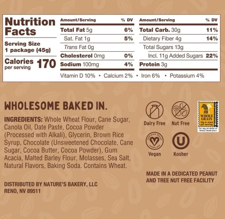 Nature’s Bakery Whole Grains Double Chocolate Brownie Bars - 12 Twin Packs.