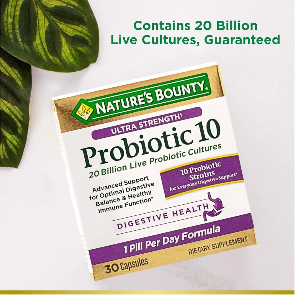 Nature’s Bounty Probiotic 10, Ultra Strength Daily Probiotic Supplement, Support for Digestive, Immune and Upper Respiratory Health, 1 Pack, 30 Capsules