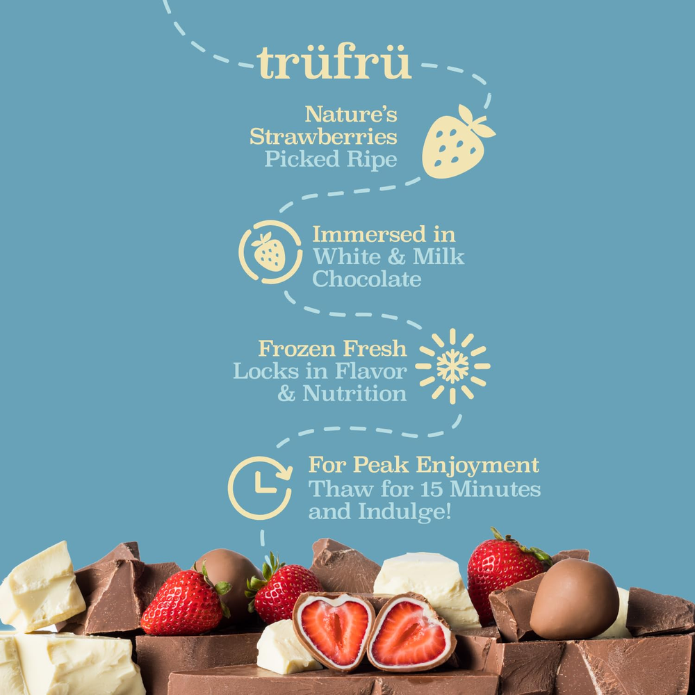 Store New Arrivals Add to Favorite View Feedback Contact Nature's Strawberries Hyper-Chilled in White & Milk Chocolate, 8 Ounce Bag Description Item model number 877F Product Dimensions 7 x 2 x 7.5 inches; 8 ounces Chocolate Type Milk Units 8.0 Ounce Occasion Congratulations Flavor Strawberries White & Milk Chocolate Item Form Frozen INDULGENCE IS NATURAL – At only 90 calories per serving, you don't need to deny yourself indulgence when your treats are all natural CLEAN INGREDIENTS - 100% real fruit, picked ripe, frozen fresh, immersed in premium, sustainable, white and dark chocolate HYPER CHILLED - to lock in flavor and freshness.State of Readiness: Ready to Eat PERMISSIBLE INDULGENCE - Trans-fat free, high in fiber, lower in calories FITS YOUR LIFESTYLE - Gluten-Free and Non-GMO What is Tru Fru? A healthy snack disguised as an indulgent treat? Or an indulgent treat disguised as a healthy snack? Why yes. Yes, it is. At only 90 calories a serving, nature’s premium fruits are freshly frozen, double immersed in white and then dark or milk chocolate, and uniquely fresh frozen to enhance flavor. Warning: craving guaranteed! ABOUT US We offer the best prices around on high quality products. Our E-store includes media such as books, movies, music and games while offering electronics, toys, sporting apparel, clothing, tools, general home, garden items and more. SHIPPING We are always working hard to ensure your package arrives as soon as possible. Please understand that some factors like weather, high postal traffic, and the performance of shipping companies are outside of our control. We offer free shipping to the lower 48 states and ship within 2 business days of payment, usually sooner. We do not accept P.O. Boxes. Please provide a physical address. For shipping outside of the continental USA, we only use eBay's Global Shipping Program.The item is shipped to KY and then sent to the rest of the world. International customers are responsible for all duties and taxes. Continue to check out in order to calculate costs for shipping the item to your country. Messages regarding eBay's Global Shipping Program MUST be directed at eBay EXCLUSIVELY. RETURNS We offer a 30-Day Return Policy on items which you are not completely satisfied with. You have the option for a full-refund or an exchange of the item. No returns are available on items shipped outside of the USA. PAYMENT We accept PayPal. CONTACT US This page content is yet to come Please ad us to your favorite seller and visit again later Thank You CUSTOMER SATISFACTION We try our very best to make sure every customer is completely satisfied. If there's a problem, message us! We're happy to help. WE ACCEPT Copyright © 2021 AutoDS. | All Rights Reserved