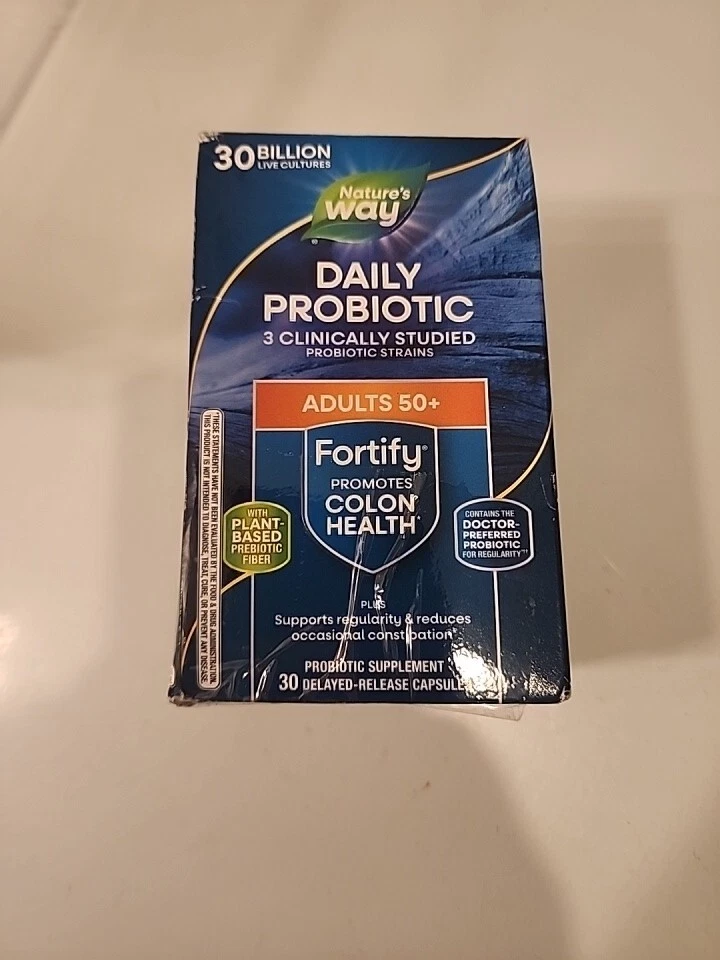 Nature's Way Fortify 50+ Daily Probiotic for Men and Women, 30 Capsules. 05/2026. Damaged Box. Unopened Bottle