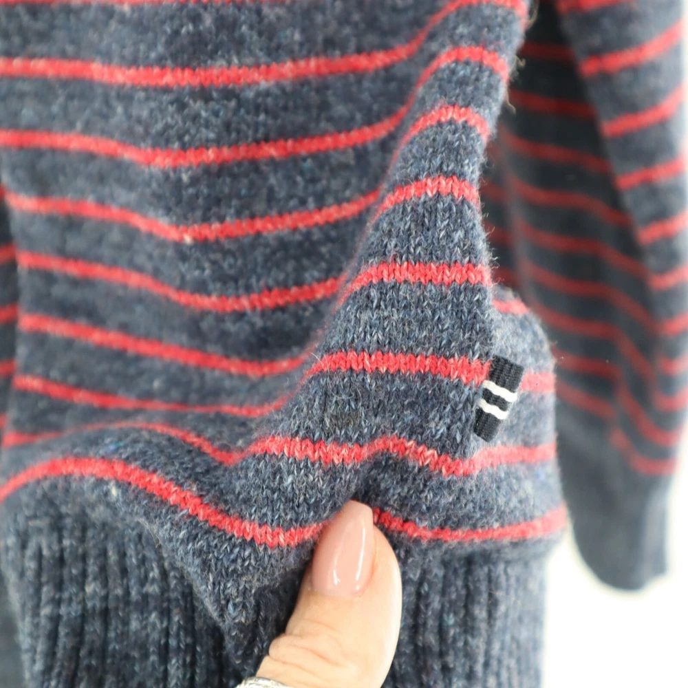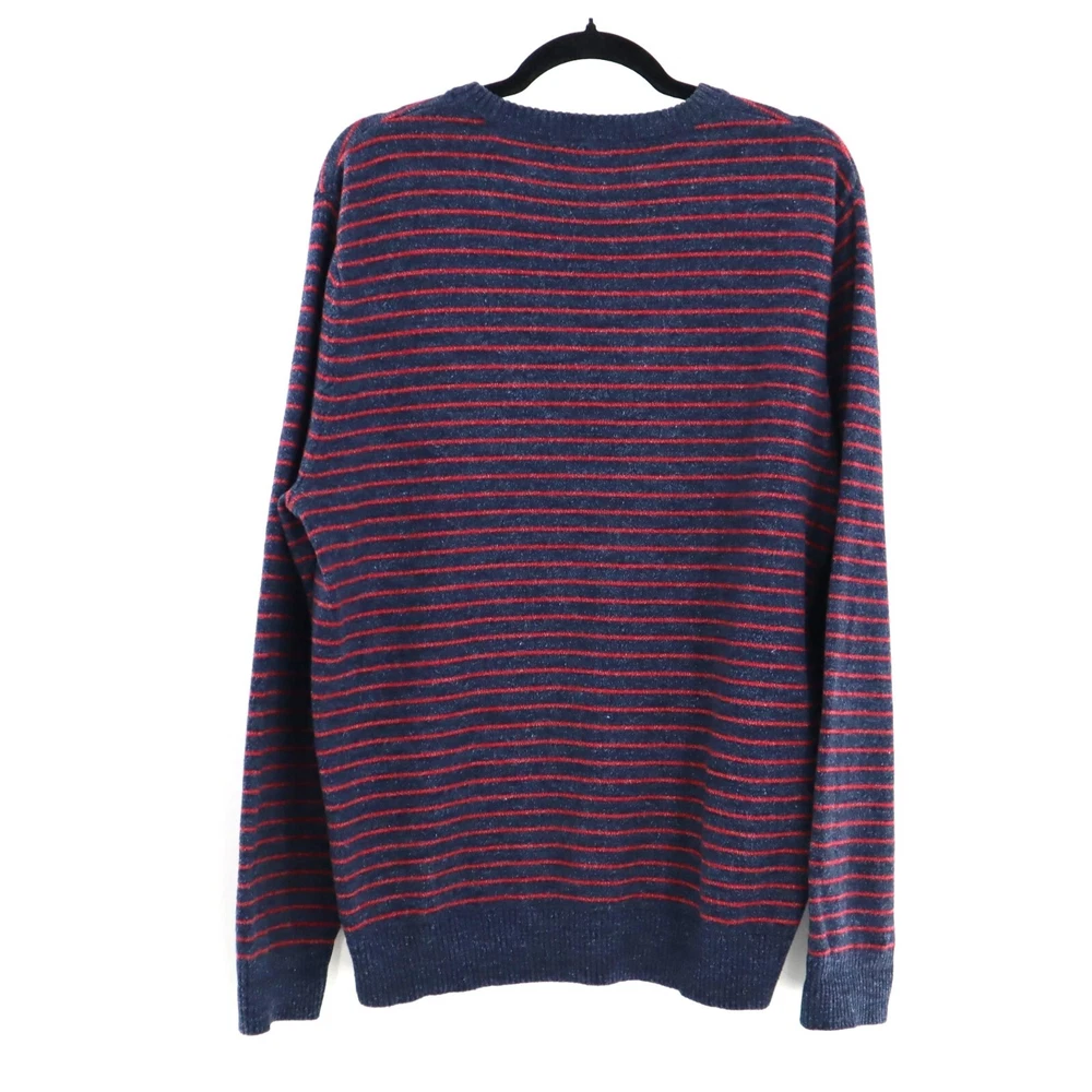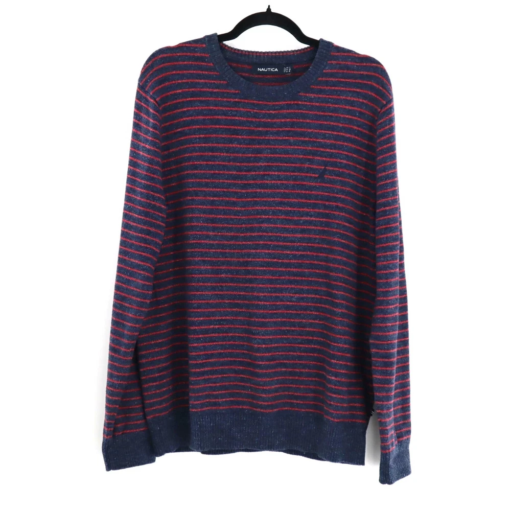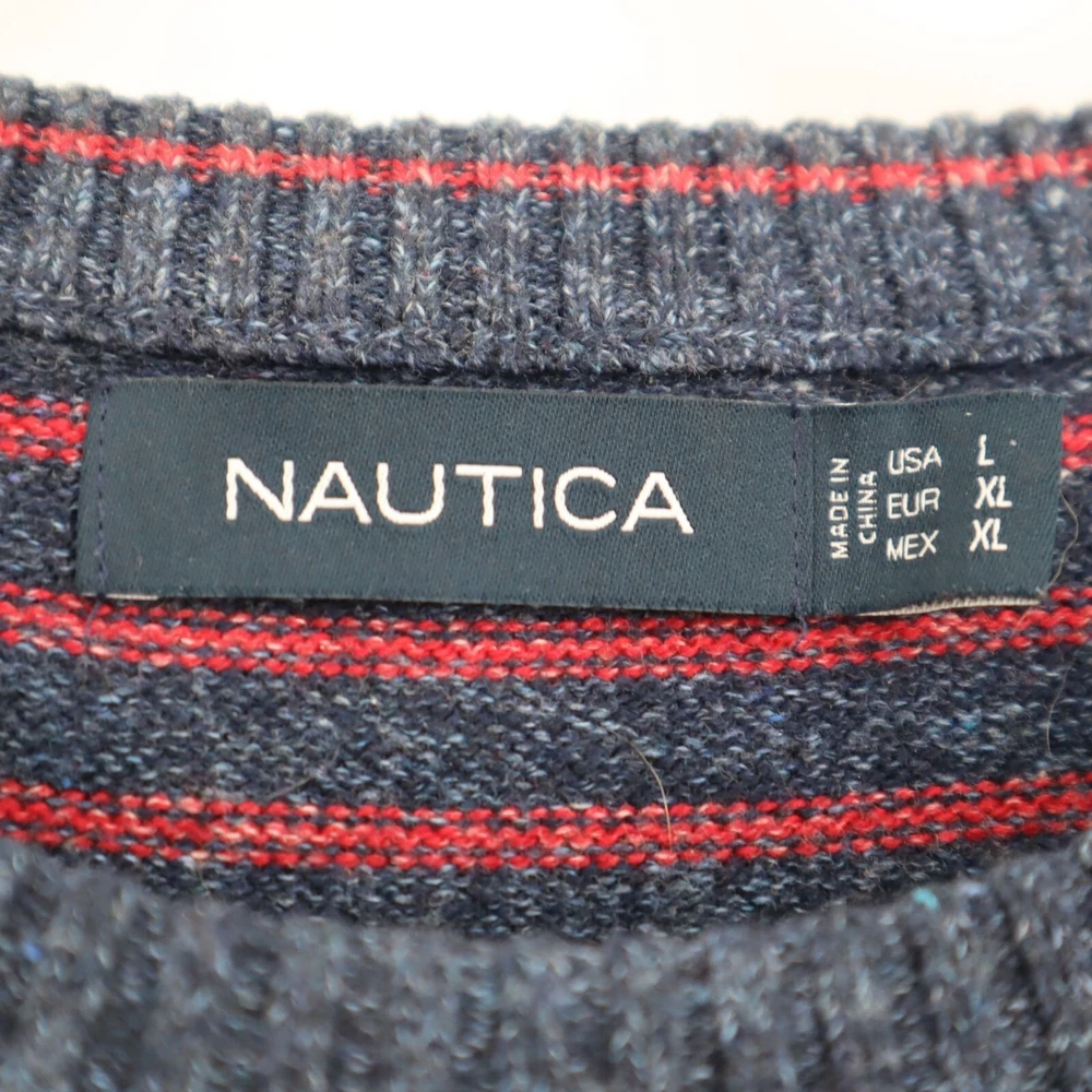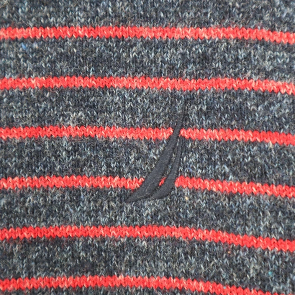 Nautica Cotton Striped Sweater Men's Large Navy Red Basic Classic Fall Academia This Nautica sweater is so stylish, it’ll make you think you’re the captain of a yacht. Or at least the captain of the couch. • Crew neck design • Long sleeves • Ribbed cuffs and hem • Nautica logo on chest • Soft and comfortable • Striped pattern • Made in China Size: Mens Large Condition: Pre-Owned Good Excellent condition with no visible flaws.
