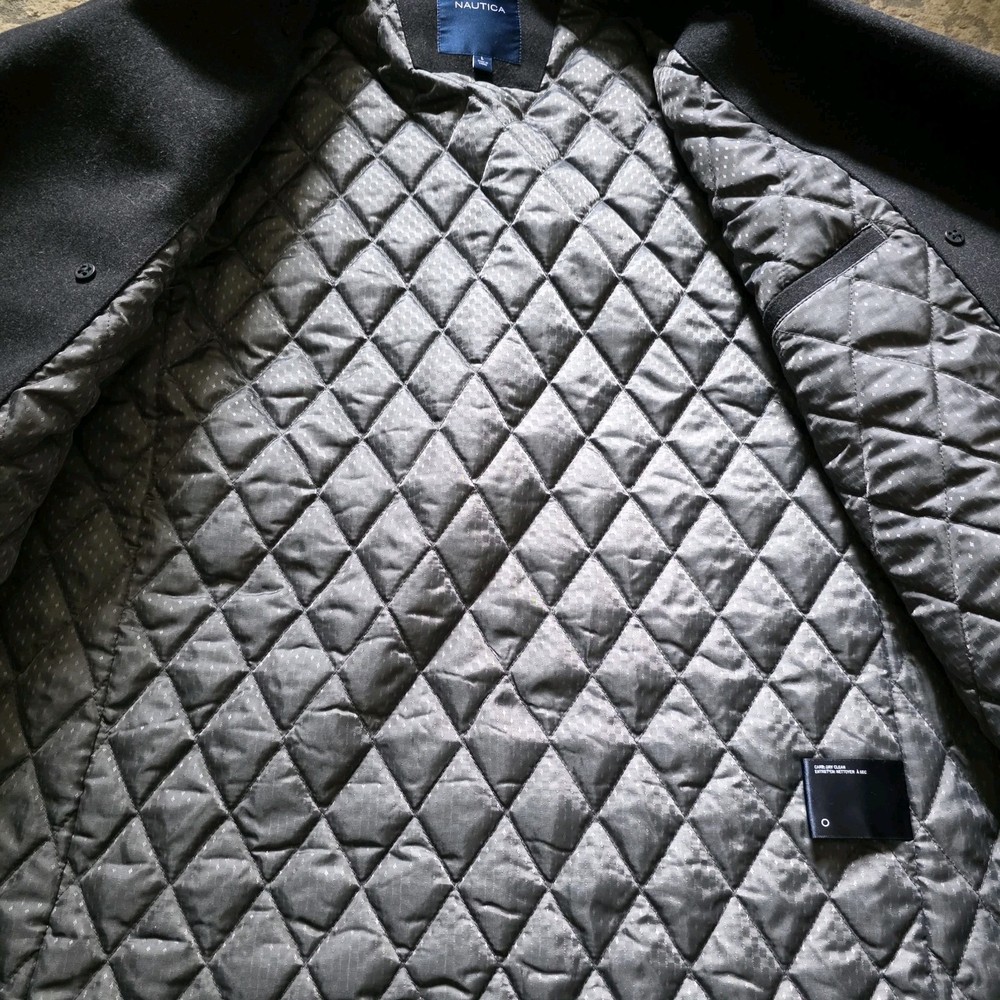 The Nautica Peacoat Trench in Men's size Large is a stylish yet practical winter wardrobe staple. Made from wool with a polyester lining, it offers warmth and comfort for the colder seasons. The navy blue color and solid pattern add a classic touch to the mid-length jacket, making it suitable for semi-casual wear. With a button closure and accents, this coat is both functional and fashionable, perfect for casual outings or travels. The Nautica brand ensures quality and timeless style, while the polyester insulation material provides added coziness for walking activities in winter and fall.