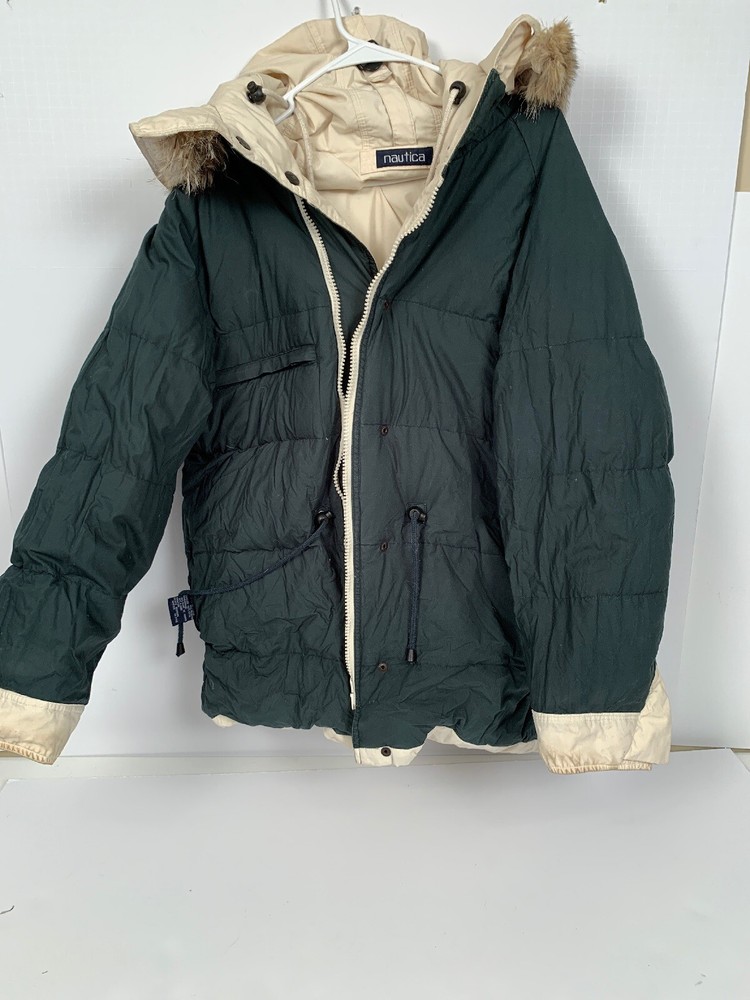 Nautica Small Reversible Puffer Jacket Green And Beige Fur Hood. Condition is Pre-owned. Shipped with USPS Priority Mail. Other Items- If you clicked on this item there is a very high chance that you could be interested in our other eBay items. We have sports team, designer, sneakers and other name brand apparel. Please check them out and new items are added daily! Shipping- Don't you just hate long shipping and handling times? We ship our items the next day to ensure our customers get their items as quick as possible. Questions- Don't hesitate to ask any questions or concerns. We will get back to you as soon as we can which is usually pretty quick. Feedback- We have 100 percent positive feedback from all of our customers over the past couple of years. We strive our best to provide the best customer service that we can. We have been in business for over four years so, buy or bid with confidence!