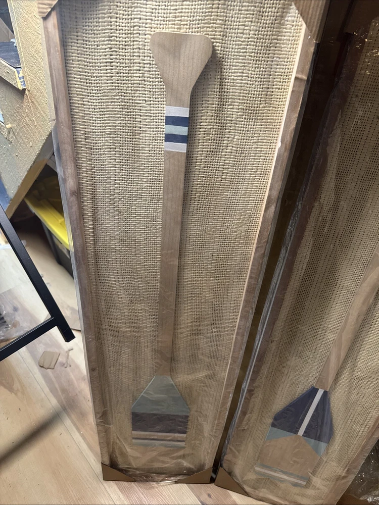Introducing a beautiful set of two decorative paddleboards, perfect for any room in your home with a nautical theme. Crafted from wood with a painted finish, these rectangular boards measure 12 inches in length and 1 inch in width, with a height of 48 inches. The multicolor boards feature a sea life pattern and are adorned with decorative features, making them a perfect addition to your home décor. The paddleboards are suitable for teens, adults, and kids and are great for use in any room. Their style is nautical, and they are the perfect art for those who love the sea life. These boards are not vintage, and you can personalize them to your liking.