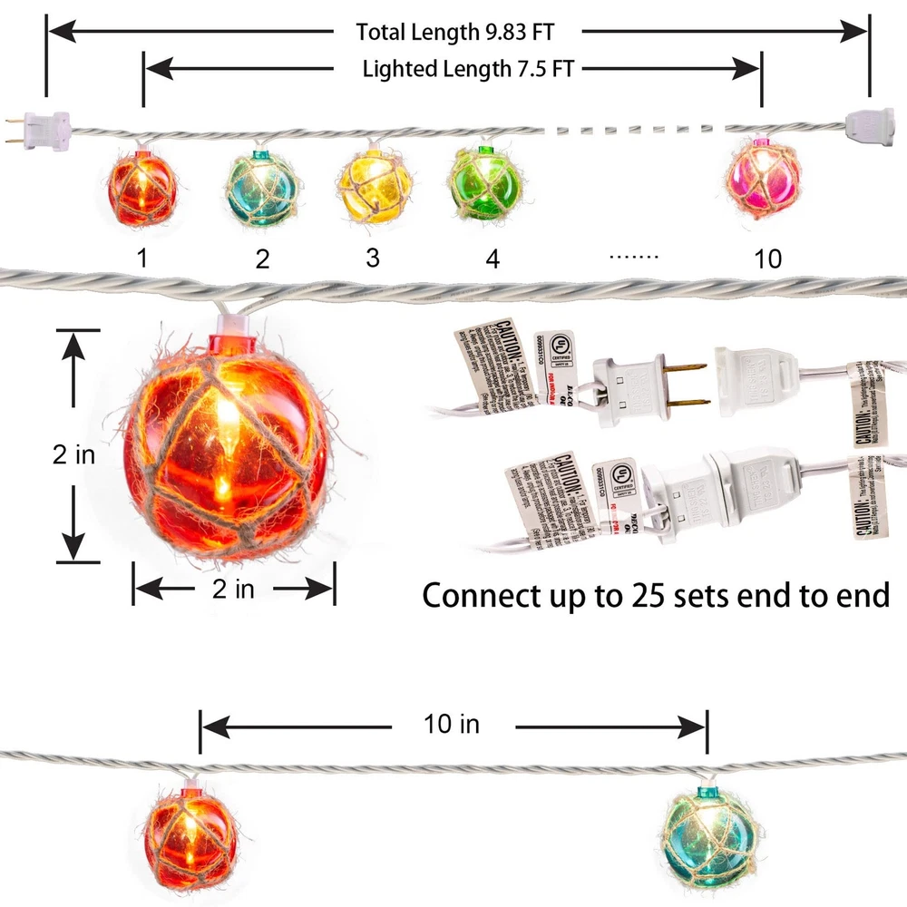 Nautical Fishing Float String Lights Beach Themed Buoy String Lights Set of 1...
