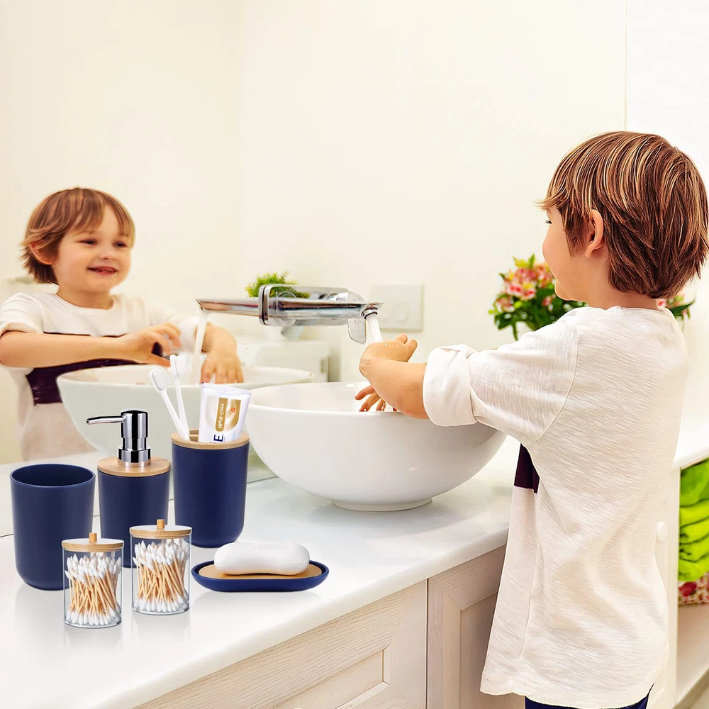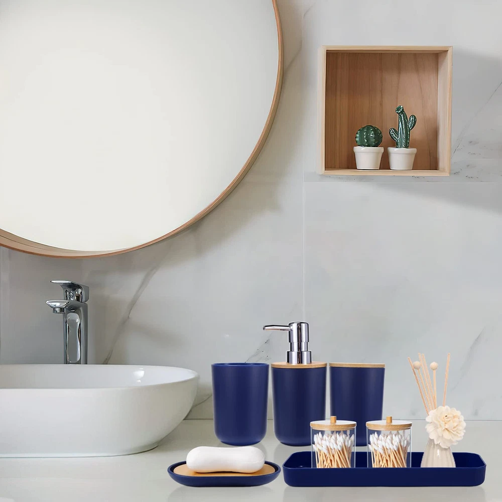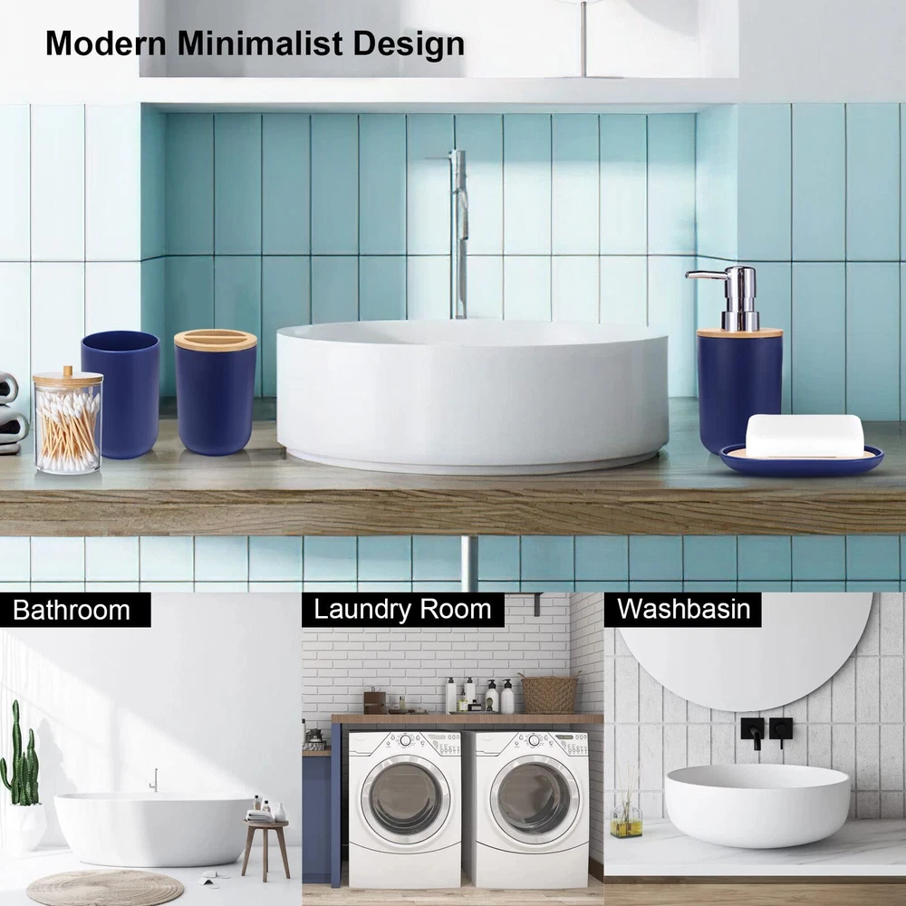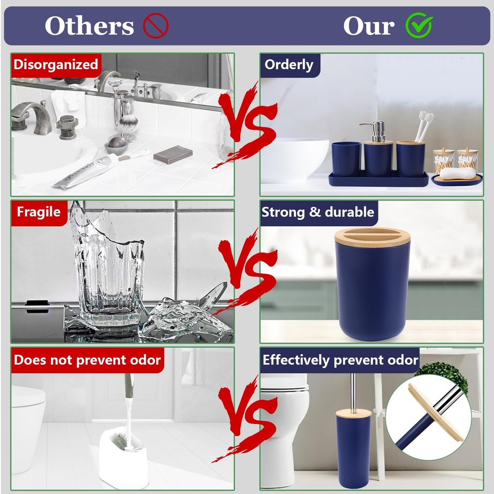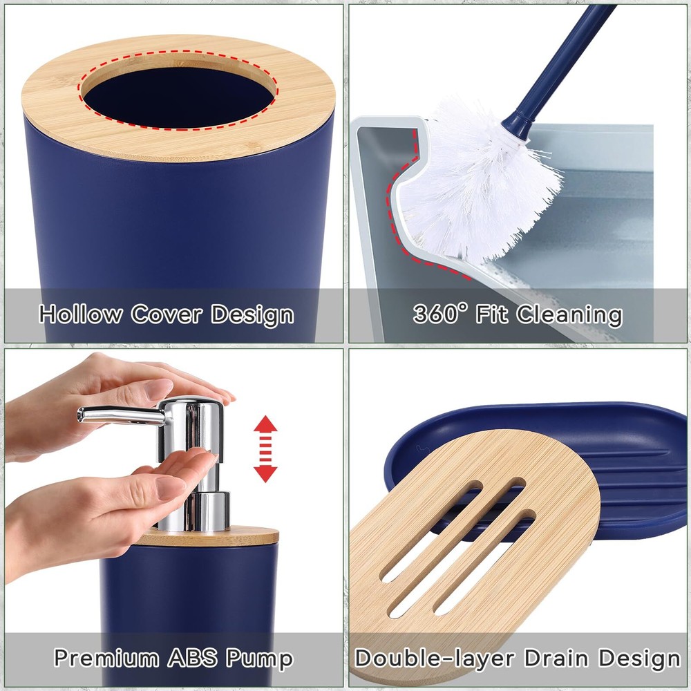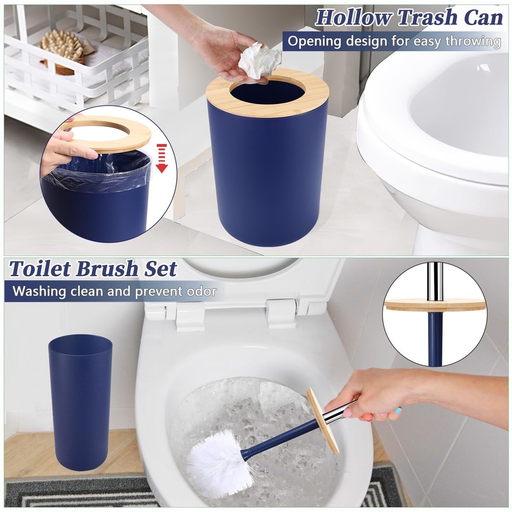 SLDIYWOW Blue Bathroom Accessories, 9-Piece Navy Blue Bathroom Accessories with Trash Can,Tray,Soap Dispenser,Toothbrush Holder,Toothbrush Cup,Soap Dish,Toilet Brush and Q-tip Holders for Bathroom 【Navy Blue Bathroom Accessories Sets Complete】9 pieces navy blue bathroom set includes 1 x soap dispenser, 1 x toothbrush holder, 1 x toothbrush cup, 1 x soap dish, 1 x trash can, 1 x toilet brush set, 1 x vanity tray and 2 x qtip holders. Having most of the items you need for your bathroom will make your bathroom more eye-catching. 【Durable and Amazing High Quality】Our dark blue bathroom accessories is made of high-quality PP and ABS material, which is not easy to break, more durable and long-lasting, outperforms glass, ceramic, resin, wooden bathroom sets. Premium plastic blue bathroom sets are durable and they will stay elegant and new over time. 【Fully Functional Completed Set】Hollow trash can makes it easier for you to throw away garbage. Double-layer hollow design soap dish can keep soap dry. Q-tip holders can put qtips, cotton balls, flossers, bath salts, hair bands or any other bathroom necessities and accessories. Soap dispenser, toothbrush cup, and toothbrush holder are the perfect complement for the bathroom. Bathroom accessories are the perfect addition to your bathroom home-style makeover. 【Easy to Clean & Stay Tidy】This navy blue bathroom accessories set with trash can is designed with ease of cleaning in mind, avoiding excessive grooves and hard-to-reach corners. Its smooth surface and simple line make the cleaning easier. Just wash with soapy water and a soft cloth to make your bathroom look like new again. It not only saves your precious time, but also meets the requirements of modern life. Convenient and simple concepts make you to enjoy a more comfortable and relaxed life. 【Widely Application】Bathroom set perfect for bathroom decors, dorm, hotel, apartment, laundry room, basement, RV, etc.Perfect for wedding,housewarming/new home gift,birthday gift, mother’s day gift , valentine’s day gift,thanksgiving gift,Christmas gift,bridal or baby shower gifts,friend, sister, co-worker or just about anyone to use all year round. SHIPPING Domestic Buyers - We have confidence in our products, but if you are not fully satisfied please contact us within 30 days of purchase and you will get full refund. - We ship within 3 business days of payment, usually sooner - We offer FREE shipping on all orders! - We only ship to the lower 48 states, no APO/FPO addresses or PO Boxes allowed International buyers – please note: Import duties, taxes, and charges aren't included in the item price or postage cost. These charges are the buyer's responsibility. - Please check with your country's customs office to determine what these additional costs will be prior to bidding or buying. * Order Cancellation Policy ** You can return a product for up to 30 days from the date you purchased it. 1. The seller reserves the right to cancel the special case only due to eBay cancellation fee. 2. The decision of seller is the final. 3. The seller will respond to the cancellation request within 2 business days. Please wait for the result of cancellation. 4. In case the cancellation is not completed by some reasons, the buyer can follow the options below to get the refund. 4.1 The buyer can reject the item when it arrives. 4.2 The buyer can send the item back to the seller within 30 days If the buyer receives item (USA Shipment ONLY). The seller will provide the FREE return label to the buyer when the buyer opens " Return Item" case on eBay by using the reason as "Change my mind" ONLY. 5. When buyer has placed the order. The order will be processed and completed by automatic warehouse system within 5 minutes. In case that buyer sends the cancellation request after 5 minutes of placing the order, the request will be rejected. **Sending direct message to cancel the order is not allowed for every case.* Return Policy For the return case - If buyer would like to return the items for refund or replacement, please CONTACT SELLER to receive the free return label from seller. The refund or replacement will be processed with the tracking number of return label which is provided by seller only. The other ways of return which are not approved by seller will not be processed for the refund or replacement.