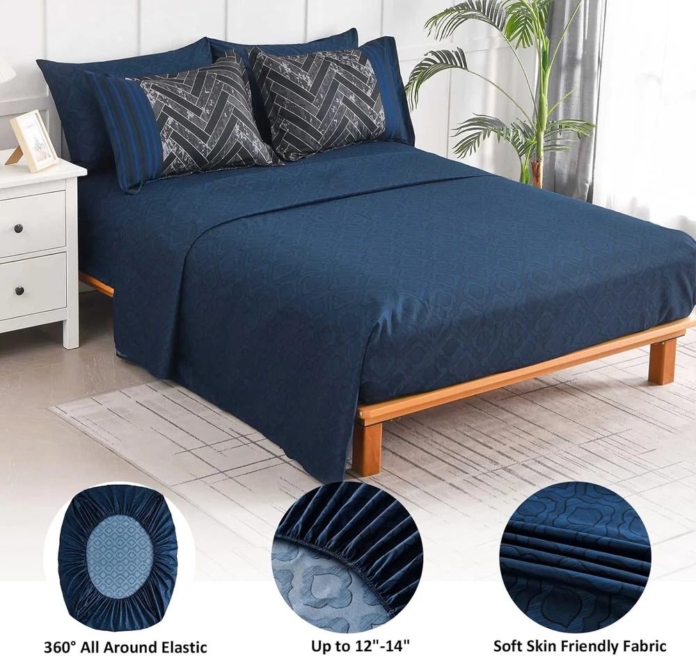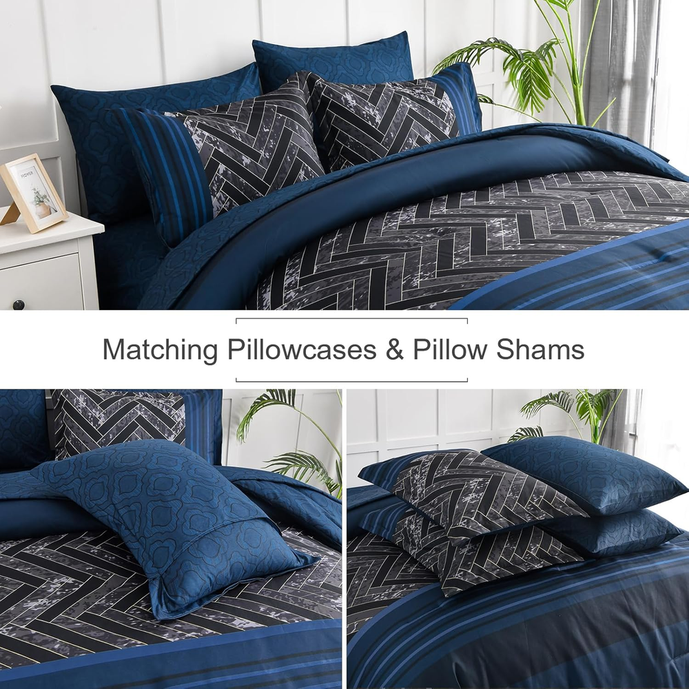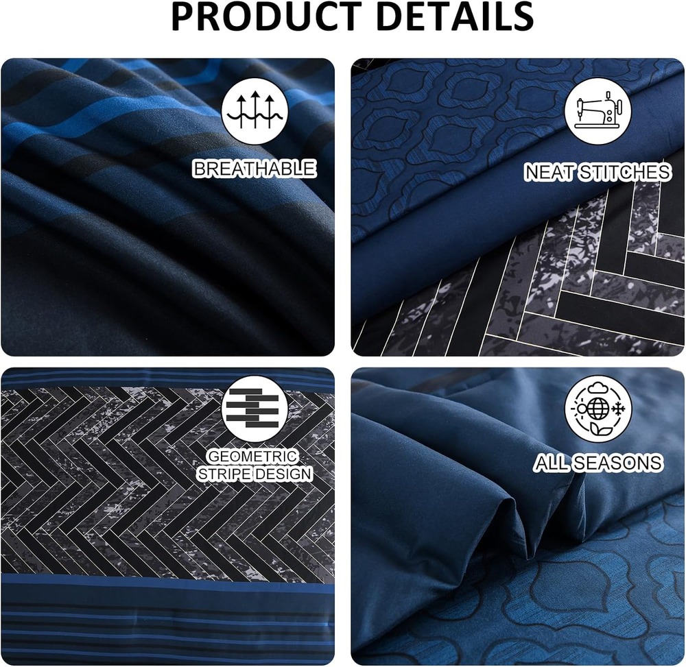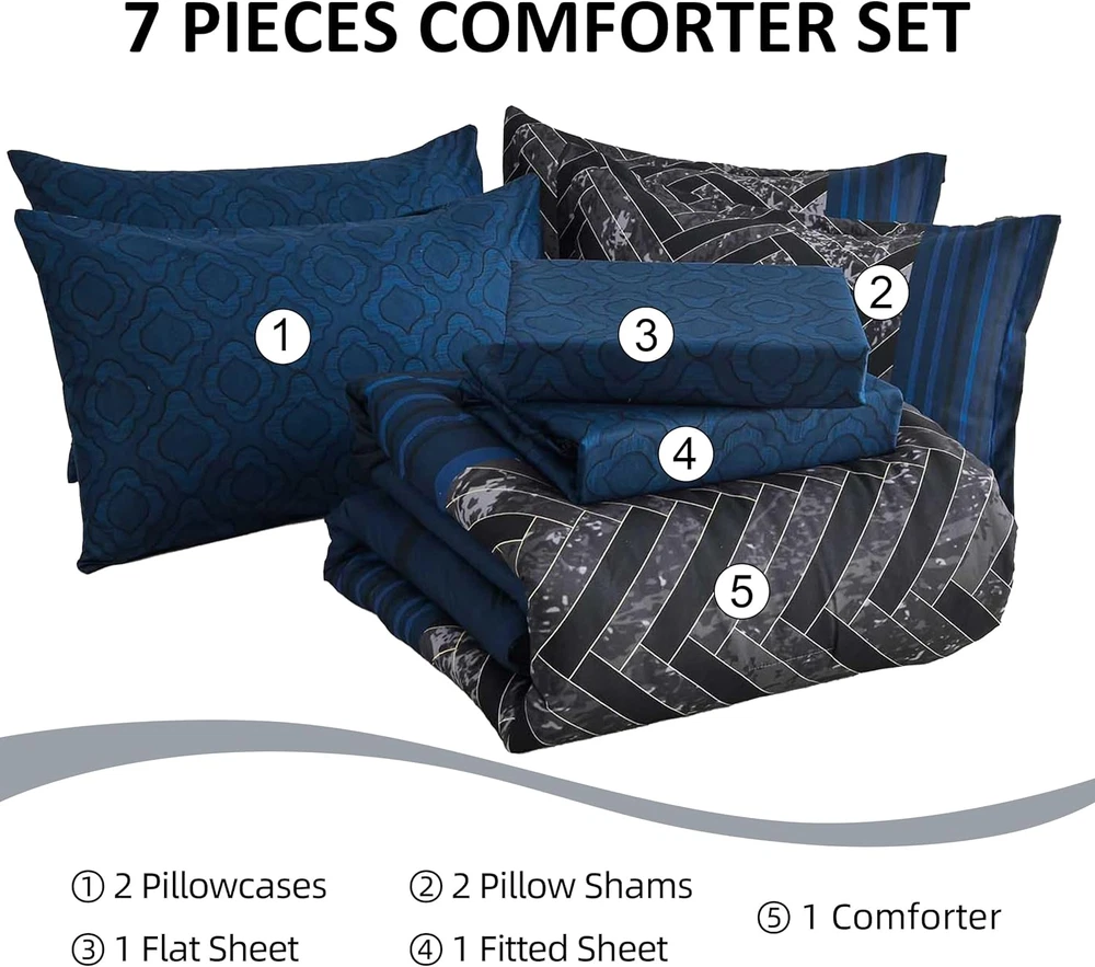 Store New Arrivals Add to Favorite View Feedback Contact Fast deliveries to the customer's home Quality customer service John Make the customers happy! Navy Blue Comforter Set King Size, 7 Pieces Stripe Geometric Bed in a Bag, Soft Microfiber Navy Comforter and Sheet Set Complete Bedding Sets for All Seasons 104"×90" Description ❤️Unique Design: This chic navy striped comforter features a modern geometric pattern and shimmering gold metallic accents, creating an elegant and sophisticated look. The deep navy hue adds a touch of drama to your bedroom decor. This comforter is the perfect choice for anyone looking to add a touch of glamour and style to their bedding ensemble. ❤️Durable Materials: Stripe comforter made of microfiber outer fabric with ultra soft down alternative inner fill. Filling with whole microfiber technology to prevent internal clumping after washing.This fabric will wash softer, will not fade and not pilling. ❤️7 Pieces Bed in a Bag: King size comforter bed in a bag includes 1 Comforter (104"x90"), 2 Pillow shams (20"x36"), 1 Fitted Sheet (78"Wx80"L+14"), 1 Flat Sheet (102"Wx108"L), 2 Pillowcases (20"Wx40"L). The fitted sheet is 14 inches deep, fits mattresses up to 14" ❤️All-Season Friendly: Geometric bed in a bag can effectively improve the problem that you need to constantly change the bedding set. This comforter is light enough for warm weather, but still heavy for cold winter. And 7-piece comforter set solves the difficult problem of matching for you. ❤️Easy Care: Machine wash it in cold water on a gentle cycle. Use mild detergent and avoid using bleach or fabric softeners. To fluff up your comforter, gently shake it out or give it a good shake after washing and drying. Product description New Product From LUXUDECOR Customer Reviews 4.3 out of 5 stars 811 4.3 out of 5 stars 811 4.3 out of 5 stars 812 4.5 out of 5 stars 2,151 4.5 out of 5 stars 2,151 4.5 out of 5 stars 2,151 Price $48.44 $ 48 . 44 $45.59 $ 45 . 59 $45.59 $ 45 . 59 $45.59 $ 45 . 59 $44.24 $ 44 . 24 $44.24 $ 44 . 24 Pattern Stripe Stripe Stripe Floral Floral Floral Color Navy Emerald Green Brown Navy Gold Olive Green Size Queen/King Queen/King Queen/King Queen/King Queen Queen/King Soft ✔ ✔ ✔ ✔ ✔ ✔ Machine Washable ✔ ✔ ✔ ✔ ✔ ✔ Fitted Sheet Depth 35.56 Centimeters Style Modern Included Components Includes 1 comforter, 2 pillowcases, 2 pillow shams, 1 fitted sheet, 1 flat sheet Color Navy Blue Pattern Striped Material Microfiber Fabric Type Microfiber Item Weight 8.8 pounds Theme Geometric Pillowcase Length 40 Inches Seasons All Size King Package Dimensions 15.31 x 12.05 x 5.98 inches Product Care Instructions Machine Wash Number of Pieces 7 ABOUT US We offer the best prices around on high quality products. Our E-store includes media such as books, movies, music and games while offering electronics, toys, sporting apparel, clothing, tools, general home, garden items and more. SHIPPING We are always working hard to ensure your package arrives as soon as possible. Please understand that some factors like weather, high postal traffic, and the performance of shipping companies are outside of our control. We offer free shipping to the lower 48 states and ship within 2 business days of payment, usually sooner. We do not accept P.O. Boxes. Please provide a physical address. For shipping outside of the continental USA, we only use eBay's Global Shipping Program. The item is shipped to KY and then sent to the rest of the world. International customers are responsible for all duties and taxes. Continue to 'check out' to calculate costs for shipping the item to your country. Messages regarding eBay's Global Shipping Program MUST be directed at eBay EXCLUSIVELY. RETURNS We offer a 30-Day Return Policy on items in which you are not completely satisfied with. You have the option of a full-refund or an exchange of the item. No returns are available on items shipped outside of the USA PAYMENT We accept PayPal. CONTACT US This page content is yet to come Please ad us to your favorite seller and visit again later Thank You CUSTOMER SATISFACTION We try our very best to make sure every customer is completely satisfied. If there's a problem, message us! We're happy to help. WE ACCEPT
