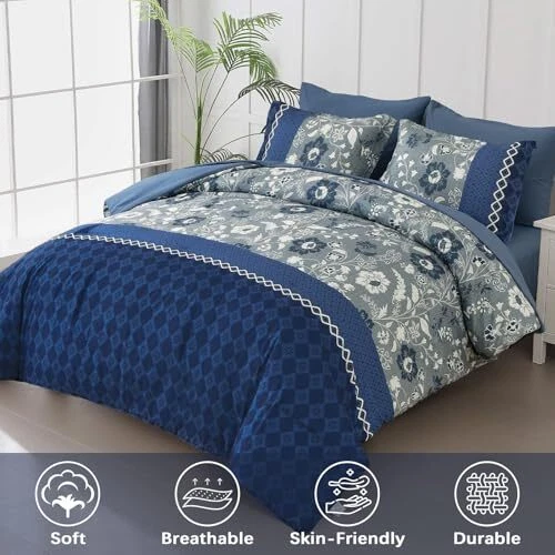 UPC: Does Not Apply gtin13: Does Not Apply Date First Available: August 16, 2024 Material: Polyester Type: Does Not Apply Manufacturer: Does Not Apply Number of Pieces: 7 Color: Navy Blue Seasons: All Item Height: 4 Item Length: 15 Brand: Does Not Apply EAN: Does Not Apply Theme: Bhemian Pattern: Floral Item Width: 11 MPN: Does Not Apply Product Care Instructions: Machine Wash Package Dimensions: 15 x 11 x 4 inches Included Components: 1 Comforter, 1 Flat Sheet, 1 Fitted Sheet, 2 Pillow Shams,2 Pillo Fabric Type: Microfiber Size: Queen Cartoon Character: Boho Floral Item Weight: 7 pounds Style: Boho