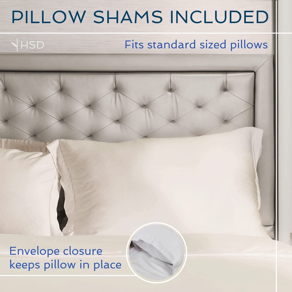 We are a USA based seller and answer most emails and questions within a few hoursSizing TableTwin Size fitted sheet: 39 x 75" + 15" Pockets flat sheet: 66 x 96" pillowcase: 1 Standard Size Pillowcase 20 x 30"Full Size fitted sheet: 54 x 75" + 15" Pockets flat sheet: 81 X 96" pillowcase: 2 Standard Size Pillowcases 20 x 30"Queen Size fitted sheet: 60 x 80" + 15" Pockets flat sheet: 90 X 102" pillowcase: 2 Standard Size Pillowcases 20 x 30"King Size fitted sheet: 76 x 80" + 16" Pockets flat sheet: 108 X 102" pillowcase: 2 King Size Pillowcases 20 x 40"California King Size fitted sheet: 72 x 84" + 16" Pockets flat sheet: 108 X 102" pillowcase: 2 King Size Pillowcases 20 x 40"Deep PocketsTwin-Queen Fits mattresses up to 15" deep and King fits 16" mattresses Quality Materials - These high-quality bedspread covers are made of the best quality, and are also OEKO-TEX 100 Certified from harmful substances. Machine Washable - This premium duvet cover set is machine washable for an easy clean and maintains its softness over wash cycles. Easy Access - No more messing around with bothersome buttons. Our full duvet cover set has been designed with corner ties to secure your comforter in place, and a zipper seal for easy closure. Cooling Comfort - Soft as a cloud, yet soothingly cooling to the touch. The cooling effect of these full bed set covers will help keep your bedding sweat-free for a more temperate and restful night’s sleep. Machine Washable - This premium duvet cover set is machine washable for an easy clean and maintains its softness over wash cycles.