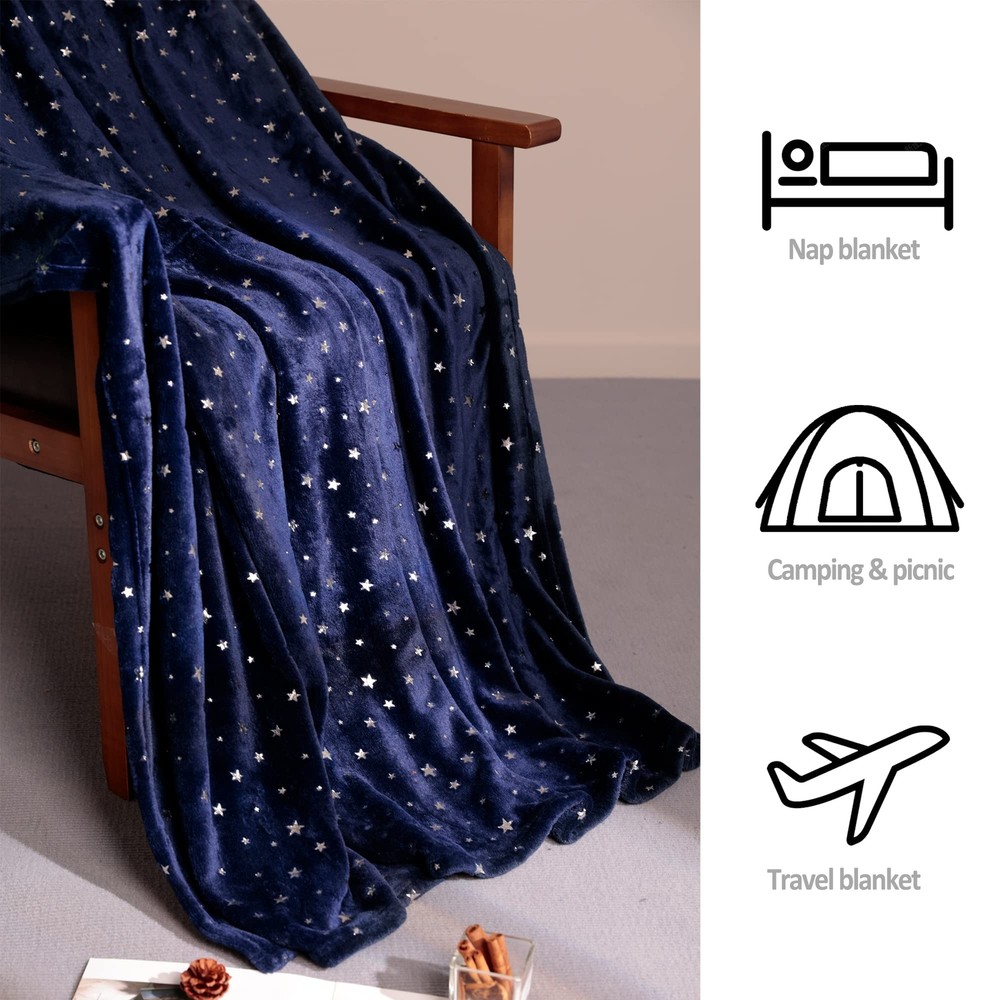 Exciting Offers Await! Check out our exclusive collection at unbeatable prices. Navy Blue Throw Blanket, Ultra Soft Thick Flannel Star Foil Print Fleece Bed Blanket for Sofa Couch, Twin Size 80"x65" Product Overview If you’re looking for a cozy, lightweight and unique blanket, This star blanket would be a great choice. Beautiful appearance combined with warm comfort, available in four sizes to meet the use requirements of various scenarios.THROW SIZE(65"L x 50"W) is perfectly suited for naps at the office. TWIN SIZE(80"L x 65"W)is perfectly suited for watching movies on the couch with the family. QUEEN SIZE(90"L x 90"W) and KING SIZE(108"L x 90"W)are big enough for bed when you sleeping.Just snuggle with our soft blanket and have a good rest. Main Features ⭐️Premium Fleece Blanket: The star blanket is made from 100% high-quality polyester fibre. Bring extra soft and comfort for an afternoon nap with 280 GSM Fleece, tightly stitching edges and strong seams make your warm blanket more durable. ⭐️Versatile Usage Scenarios: Our lightwight and warmth blanket is suitable for ALL-SEASON. Use while reading, watching TV, reading or sleeping. Four sizes are available to meet the requirements of different scenarios. Perfect for Indoor and outdoor, such as camping, picnic and traveling, etc. ⭐️Galaxy Theme Blanket: Print silver stars on the navy blue blanket, like a quiet night sky. The silver stars are printed on it with something like foil stamping paper and the pattern is not easy to fall off, please feel free to use. The navy blue and silver color adds to its luxurious looks. ⭐️Perfect Gift Idea: The unique design blanket would be great for Christmas, birthday gifts, etc. Choose our blanket to keep your family and friends feel loved all around. Blankets can be used all year round, as well as for kids and pets. ⭐️Easy Care & Guarantee: Machine wash cold separately, gently cycle only, no bleach. MONEY BACK GUARANTEE & 100% SATISFACTION . Please feel free to us when you have any problem. Payment Details ✔ Secure payments through eBay's system. ✔ We accept PayPal and all major credit cards. ✔ Payment must be completed immediately after purchase. ✔ For any payment issues, please contact our support team for assistance. Shipping Information ✔ Orders are shipped to the address provided at checkout. Please ensure it is correct. ✔ We process orders within 1 business day (excluding weekends and holidays). ✔ Delivery usually takes 3-5 business days. ✔ We use trusted carriers like UPS, FedEx, and USPS. ✔ Shipping is only available within the contiguous United States. No shipping to Alaska, Hawaii, Puerto Rico, or PO Boxes. ✔ Contact us if you experience any shipping delays. Return Policy ✔ We offer a 30-day return policy. ✔ If you are not satisfied with your purchase, you can return it within 30 days for a full refund. ✔ Contact us to get the return address before sending back any items. ✔ Items must be returned in their original condition and packaging.