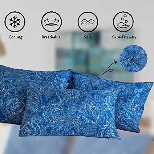 Return Policy Fast Delivery Trusted seller Navy Pillow Cases -Pillowcase Set of 4 Cooling Breathable Ultra Soft 100% Microfiber -4 Pack Navy Blue Paisley-Queen Size Product Description Queen Size:Pillowcases Queen Size (20"×30”)Pack of 4. 100% Microfiber Pillowcase :Our pillowcase is made of microfiber. Adopt high density fabric, adopt environmental protection dyeing technology.Breathable and super soft.-skin-friendly.Out of the night heat. It is the best choice for night sweats. Pillowcase Protectors:Unique designed envelope closure to cover, protect, and keep your pillow clean and in place. No zippers。Simply and easily load/take out the pillow. High quality pillow cases:Our pillowcases no pilling, no fading. The color is still bright after years of use. And durable. Change your bedroom style easily. Eaay Care:Machine wash or hand wash. Water temperature below 30°. Don't bleach. Shipping Returns Payment Shipping Shipping is FREE to all addresses other than APO/PO boxes in the lower 48 states. All our stock ships from US-based warehouses. Shipped via USPS or UPS (depending on location and package weight) Unless stated otherwise, all orders will ship within 24-72 hours of your payment being processed. Check our feedback to see the great reviews of FAST shipping we offer. Returns Seller does not accept returns Payment We currently accept payment via eBay managed payments only. Once payment is cleared, we will dispatch your shipment within 1-3 business days. Please refer to the "Shipping" tab for more information regarding shipping speed to your destination.