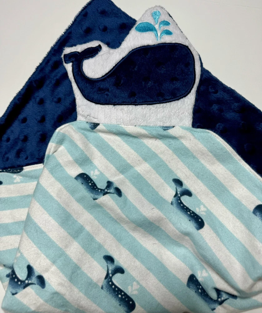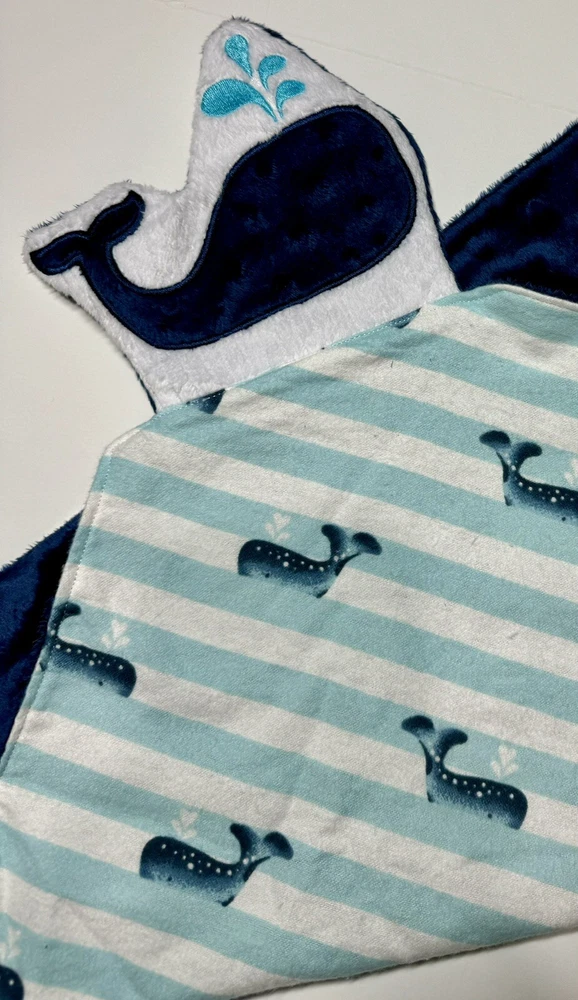 Navy Whale Baby Lovey Security Blanket Appliquéd Flannel Minky Baby Gift