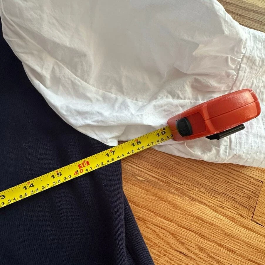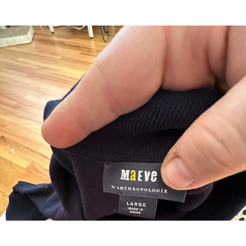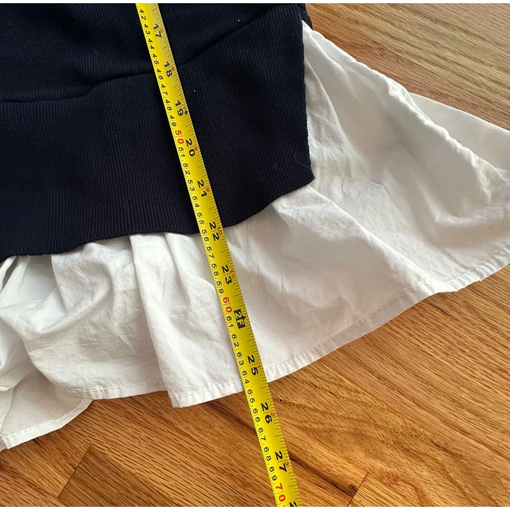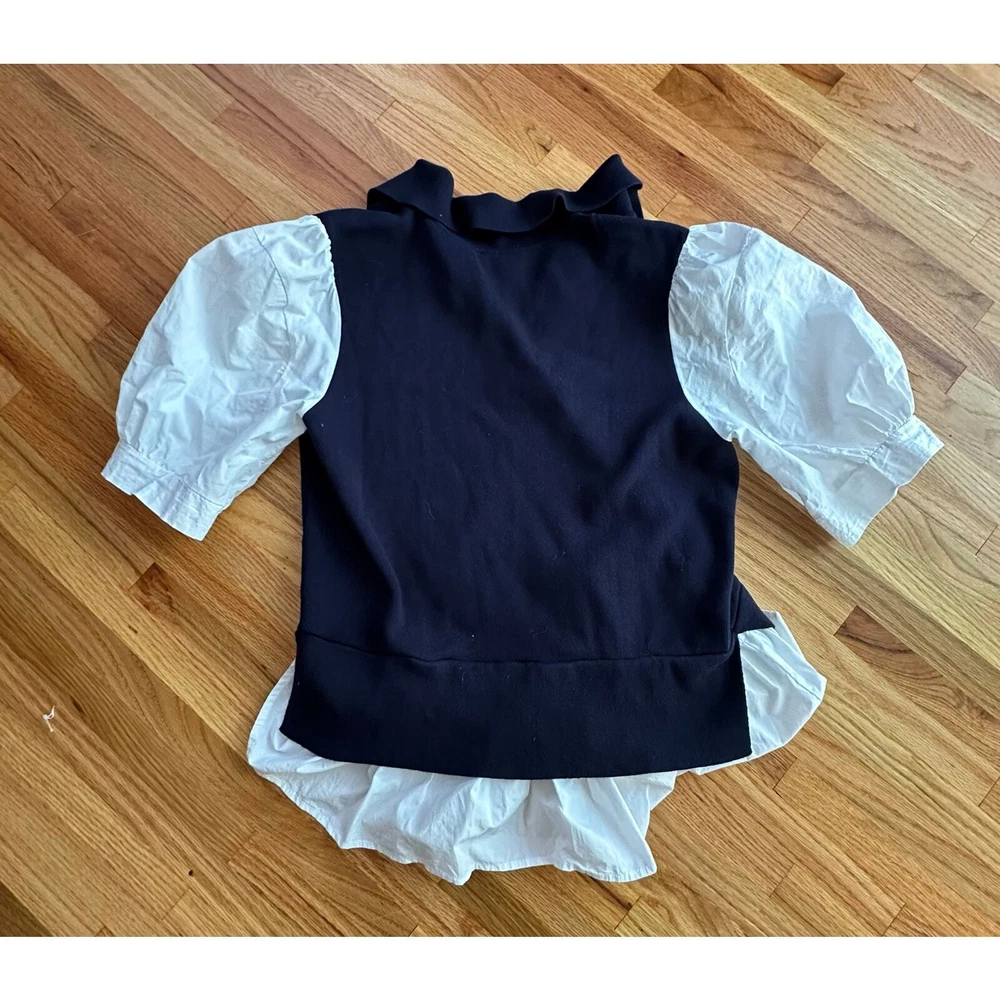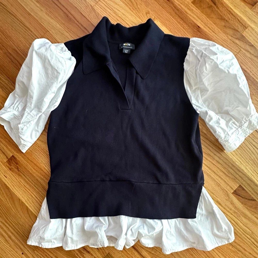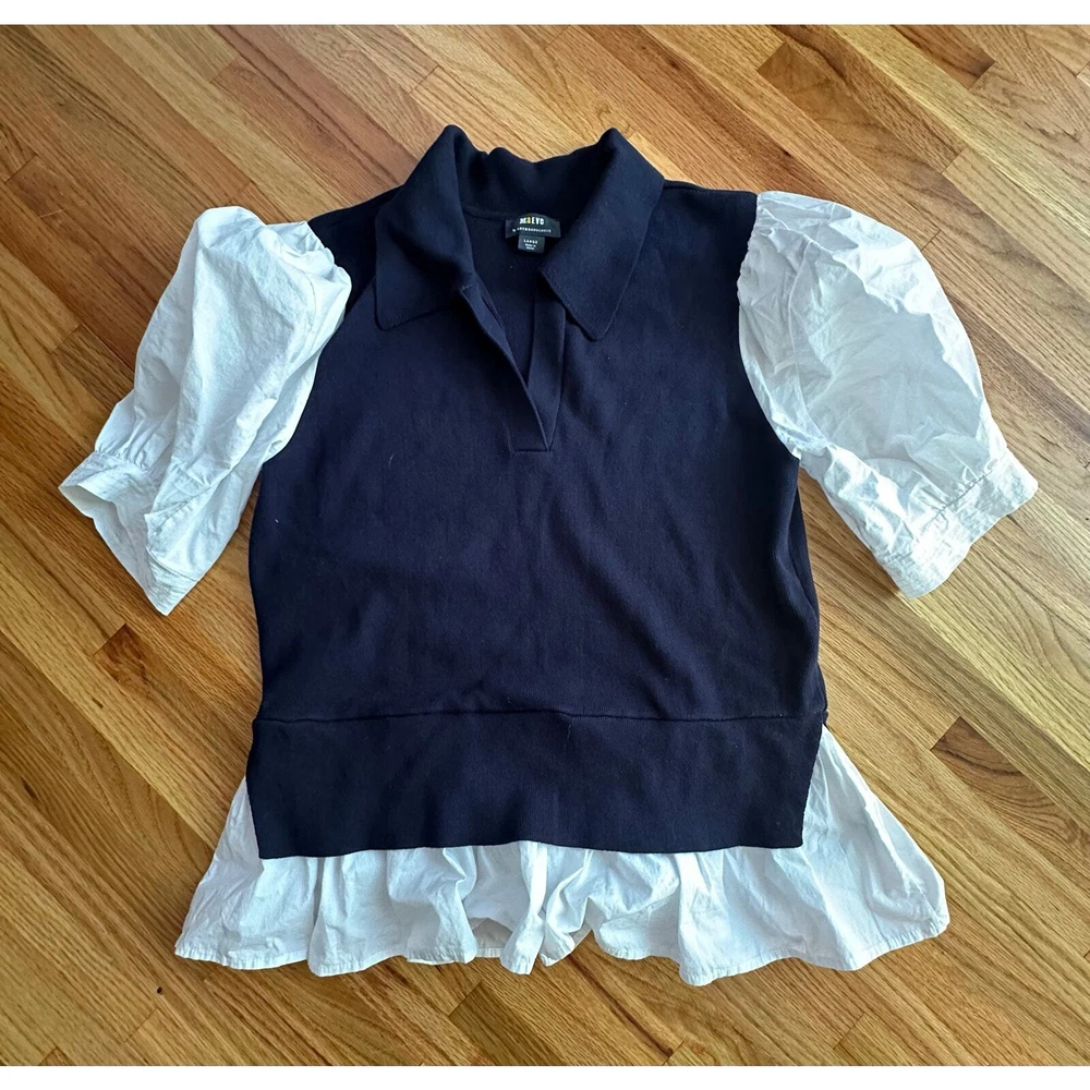 Maeve by Anthropologie l Navy Womens Layered Poplin-Sleeved Polo Sweater Preppy Back To School l SIZE L * Measurements approximate & taken on flat surface * Chest: 17" inches Length: 26" inches ( to the white portion )