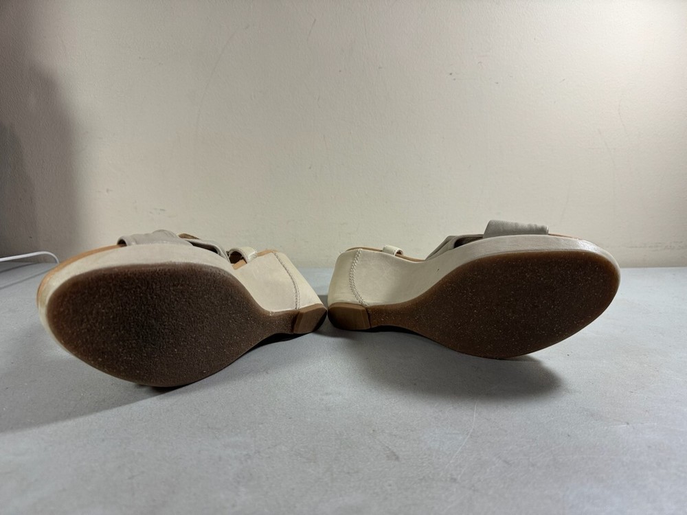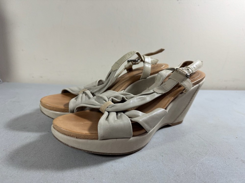 Naya Womens Beige Leather Wedge Ankle Strap Sandals Size 8.5