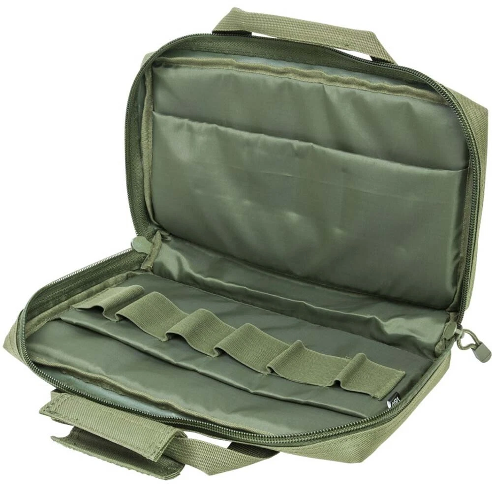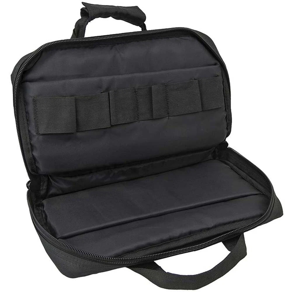 NcSTAR VISM is a manufacturer of high quality tactical accessories. They have been manufacturing high quality products since 1997. They are dedicated to providing customers with top of the line pouches, optics, and tactical equipment for the most affordable price out there. The NcSTAR Discreet Pistol case is the ideal solution to storing and taking your pistols on your trip to the range. The case is composed of a heavy duty nylon construction that is durable and will withstand most wear and tear you put it through. The case features 2 padded pistol compartments. The compartments are large enough to hold a full size pistol in each. The case also features elastic loops for magazine storage. Item Condition - Brand New in packaging Manufacture: NcSTAR Colors: Black, Black / Pink, Black / Purple, Blue, Digital, OD Green, Pink Camo, Tan, Urban Gray, Woodland Camo Size: 12.5"L x 2.25"W x 7"H Weight: 10 oz Features: - Holds 2 pistols at a time - Padded pistol compartments for protection for your pistols - 6 elastic loops for magazine storage (can hold up to 6 double stack or 12 single stack magazines) - Heavy duty wrap around handles - Small front pocket for additional storage - Lockable metal zipper pulls - Heavy duty zippers