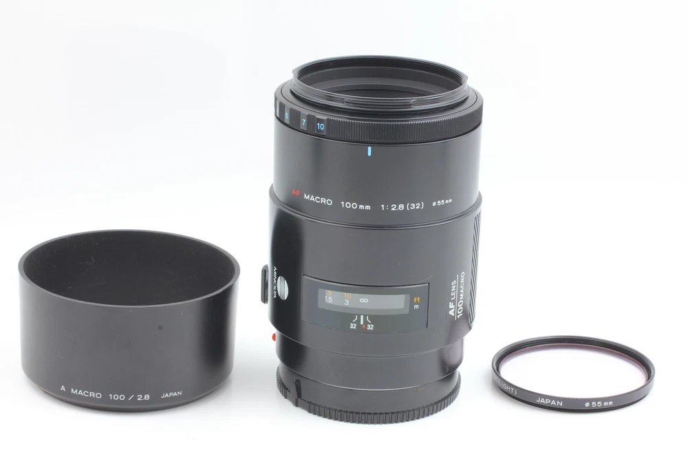 [Near MINT] Minolta AF 100mm f/2.8 Macro Lens for Sony A From JAPAN #2022363 Description Total Condition; Near MINT Serial Number; 17101225 Appearance; Appearance is beautiful. tiny scuffs from normal use. It shows signs of use. *Please check photos. Optics; -Lens: Beautiful condition. There is no fog. There is no fungus. There is no balsam separation. There are no scratches. There are no large dusts. No problem in the shooting. Functional; It works properly. Bundled Items; All you can see on the picture will be included in a set of a package. Above condition is based on my own opinion. Please check the photo carefully. Please feel free to contact me for any questions! Thank you. Shipping I send a product by DHL . I attach the tracking number. Please bid it without worrying. Shipping is available from Monday to Friday. Weekends are not available because office is closed. Storage and Packing Storage Immediately after shooting, it is placed in a closed container with desiccant and stored for 24 hours and 365 days in a temperature and humidity controlled warehouse. All products, including cameras and lenses, are stored in a temperature- and humidity-controlled warehouse 24 hours a day, 365 days a year. Packing By weight and shape of each product, I use 13 kind of cushioning materials and pursue safety and weight reduction. Returns Unconditional Return Policy Customer service and satisfaction are very important to us. I have an unconditional return policy if notified within 30 days of the receipt of the item. All returned items must be the original condition. All return requests must be made within 30 days of the receipt of the item. Please contact me first for return before you ship it back to me. The postage of the returned goods is a buyer burden. International Buyers Please Note: Import duties, taxes, and charges are not included in the item price or shipping cost. These charges are the buyer's responsibility. Please check with your country's customs office to determine what these additional costs will be prior to bidding or buying.